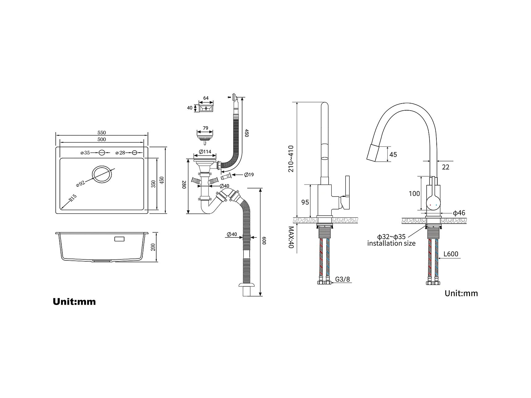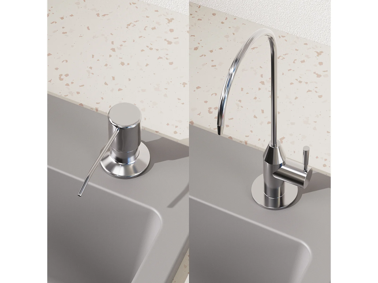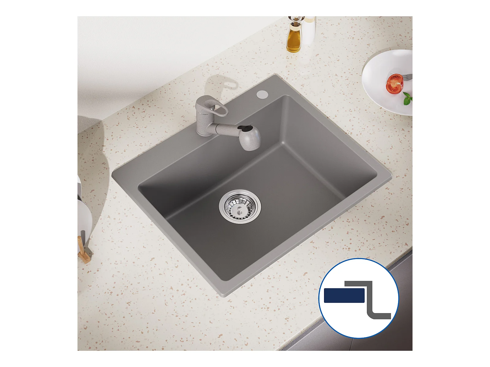 1 Bac Évier Cuisine en Granit,55*45*20cm,Kit de Vidage,Gris+Robinet de Cuisine Flexible Bec Haut Orientable