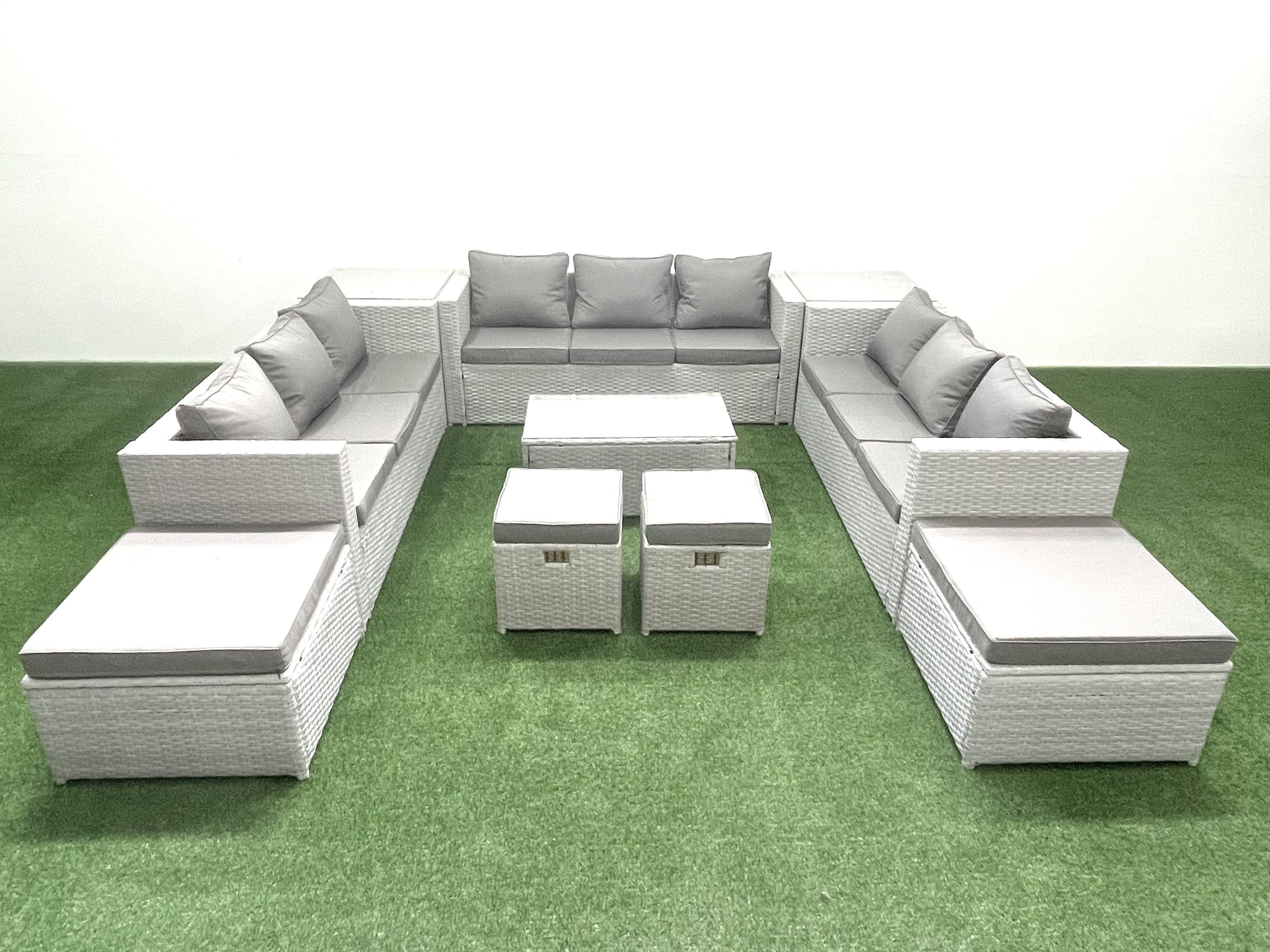 10 Pièces Salon de jardin Canapé de jardin Table basse avec 2 Tables d'appoint 4 Tabourets Gris clair mixte