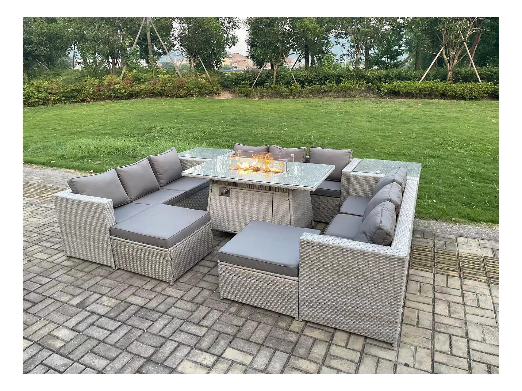 11 places Ensemble Meuble de Jardin en rotin ave 2 canapé et Fauteuil ,2 Grand Tabourets Gris Clair
