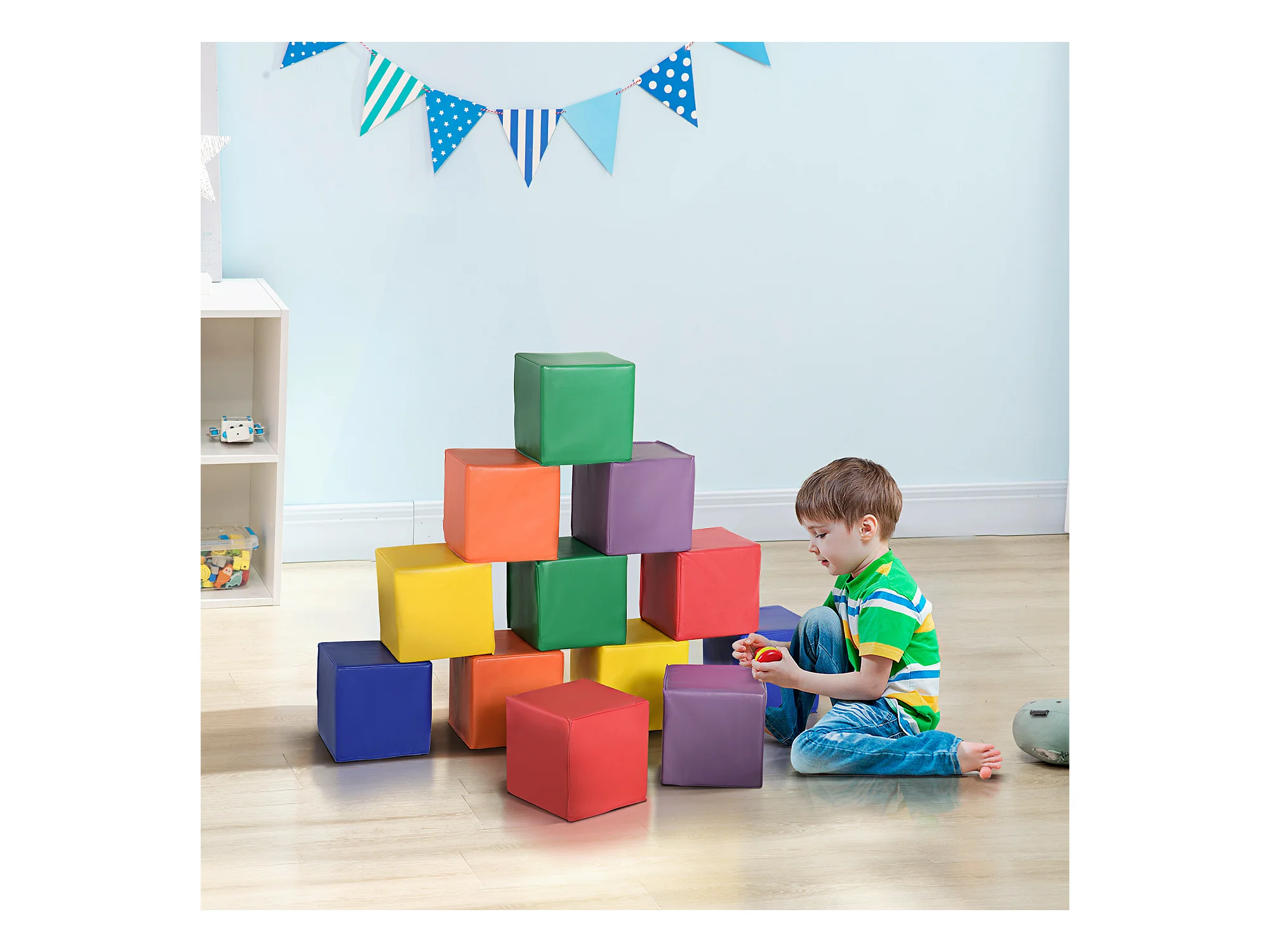 12 Blocs Cubes de Construction en Mousse - modules de motricité - Jouets éducatifs - Mousse EPE Revêtement synthétique Multicolore