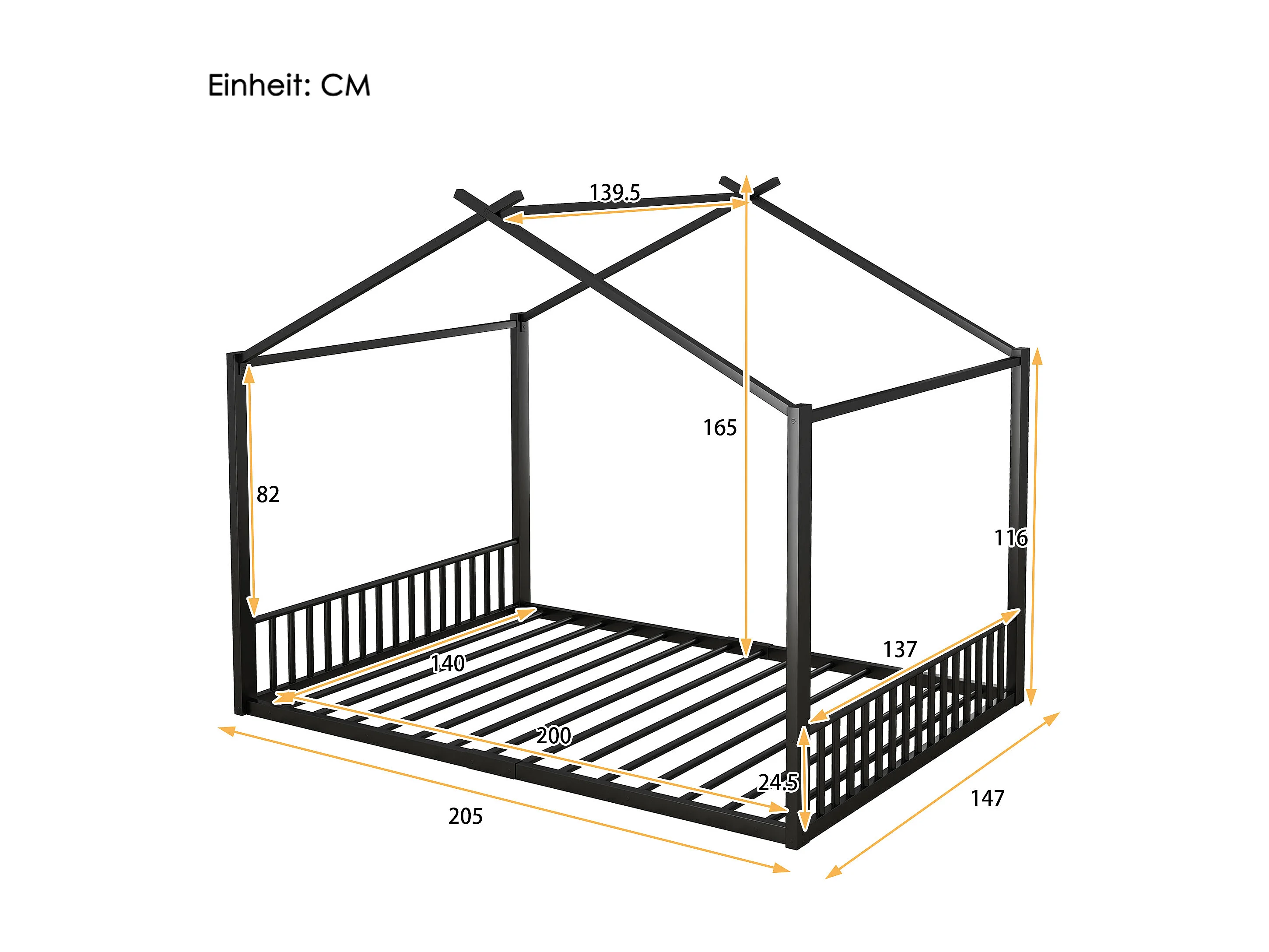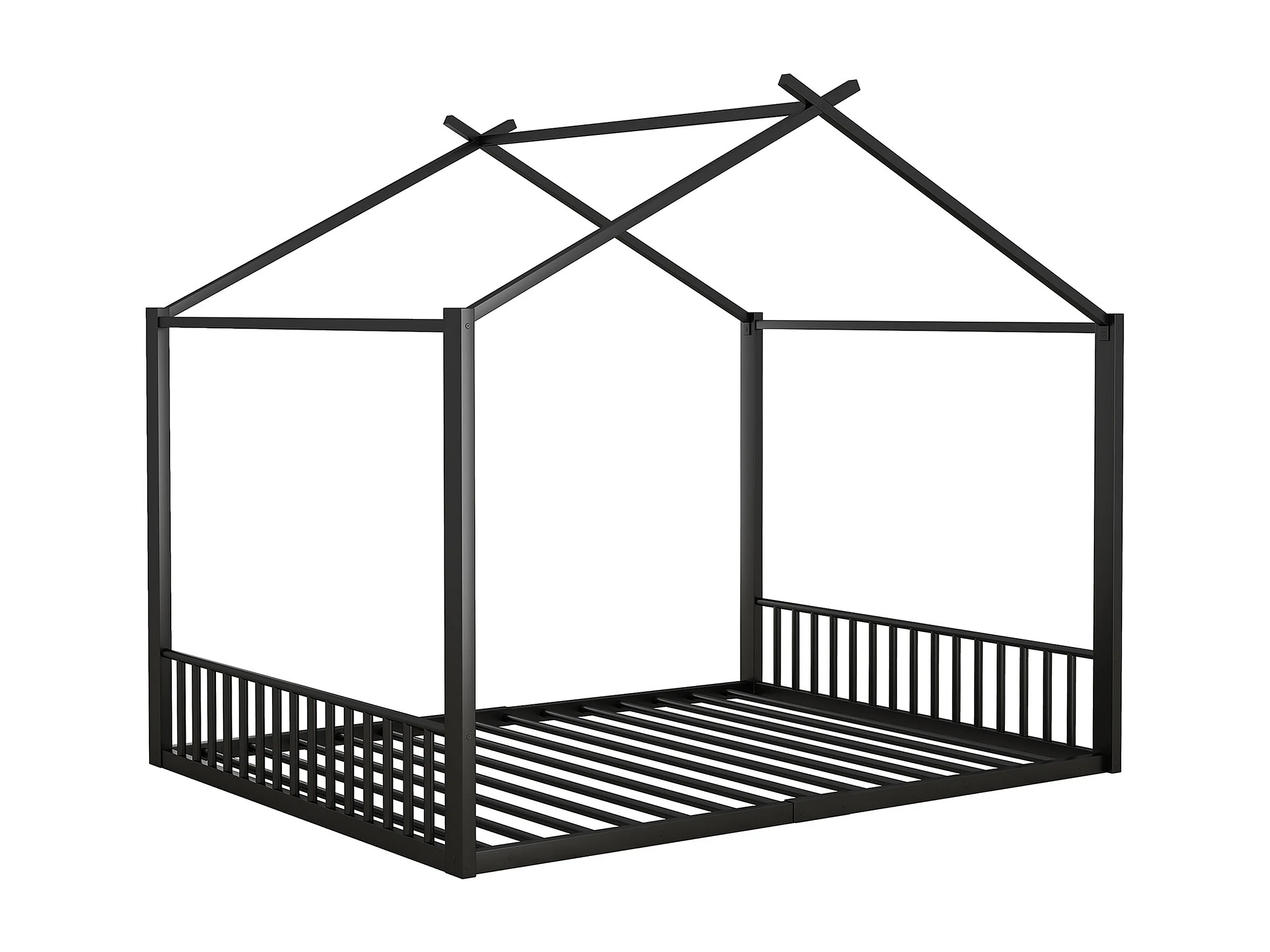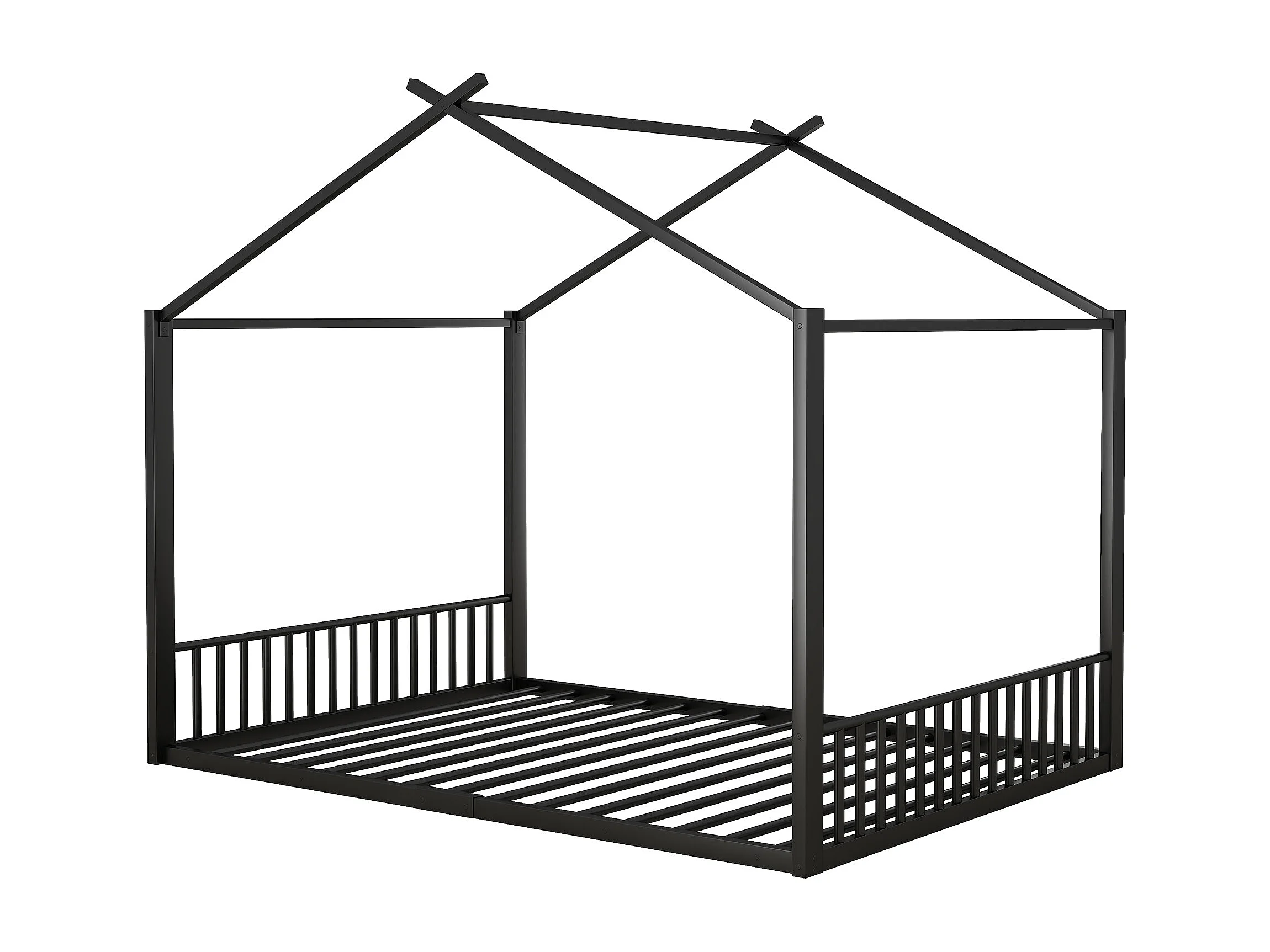 140*200cm lit plat, lit à cadre en fer, lit d'enfant, barre de maison, noir