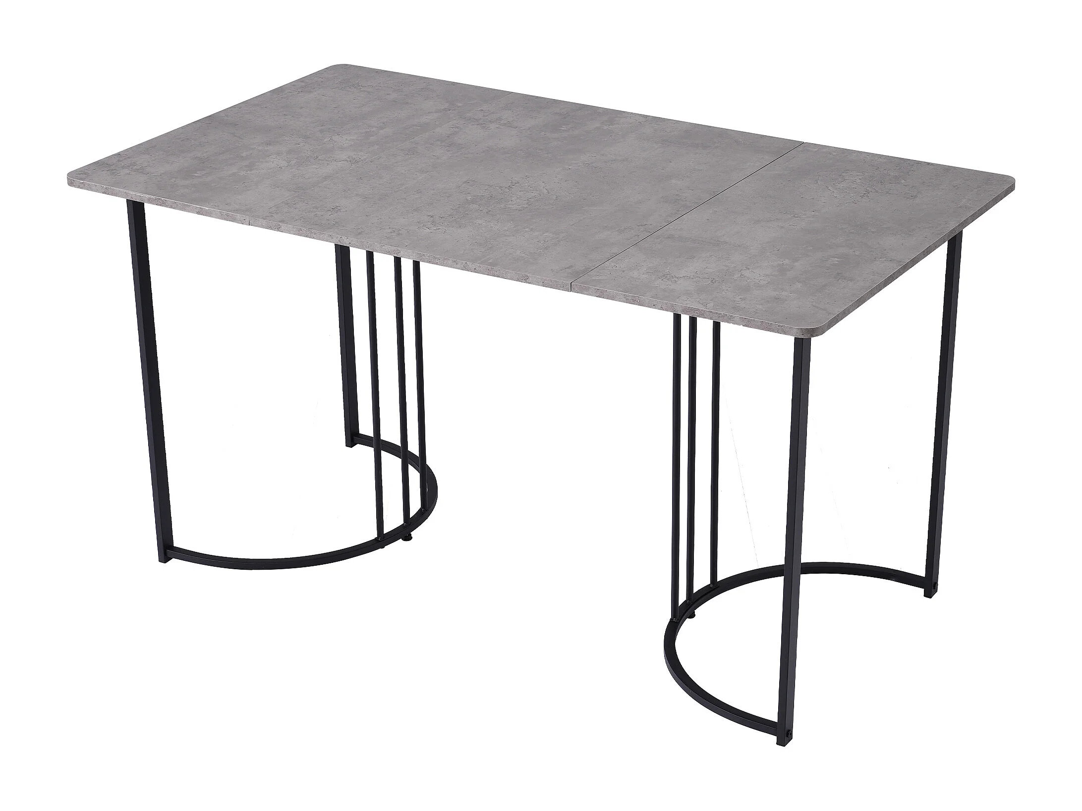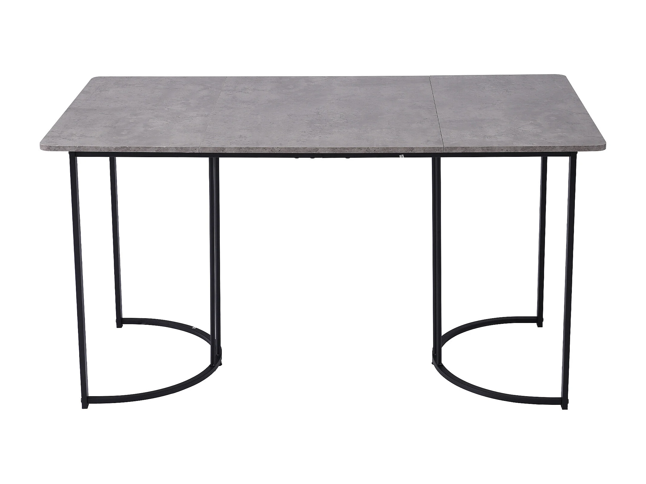 140 x 80cm Table à manger, 1 pièce, Piétement métal, Plateau effet marbre, Pieds réglables, Gris