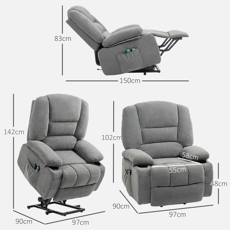 164 Fauteuil releveur électrique massant MASSIMO tissu gris foncé