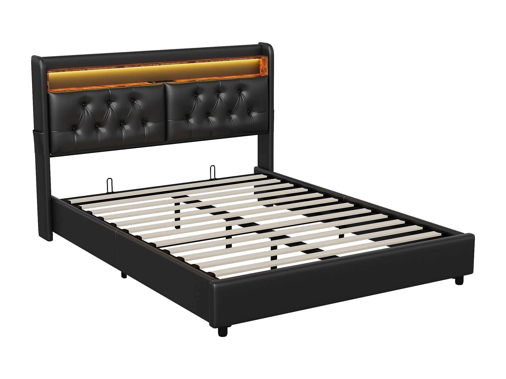 Lit coffre 180*200 avec éclairage LED, avec coffre de rangement pneumatique, PU, noir.