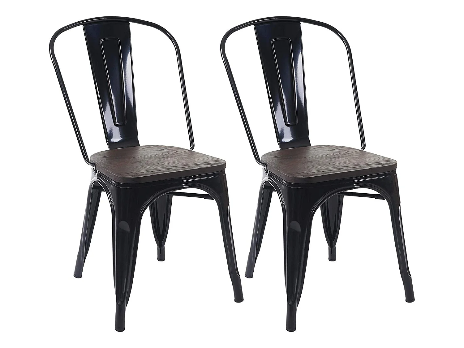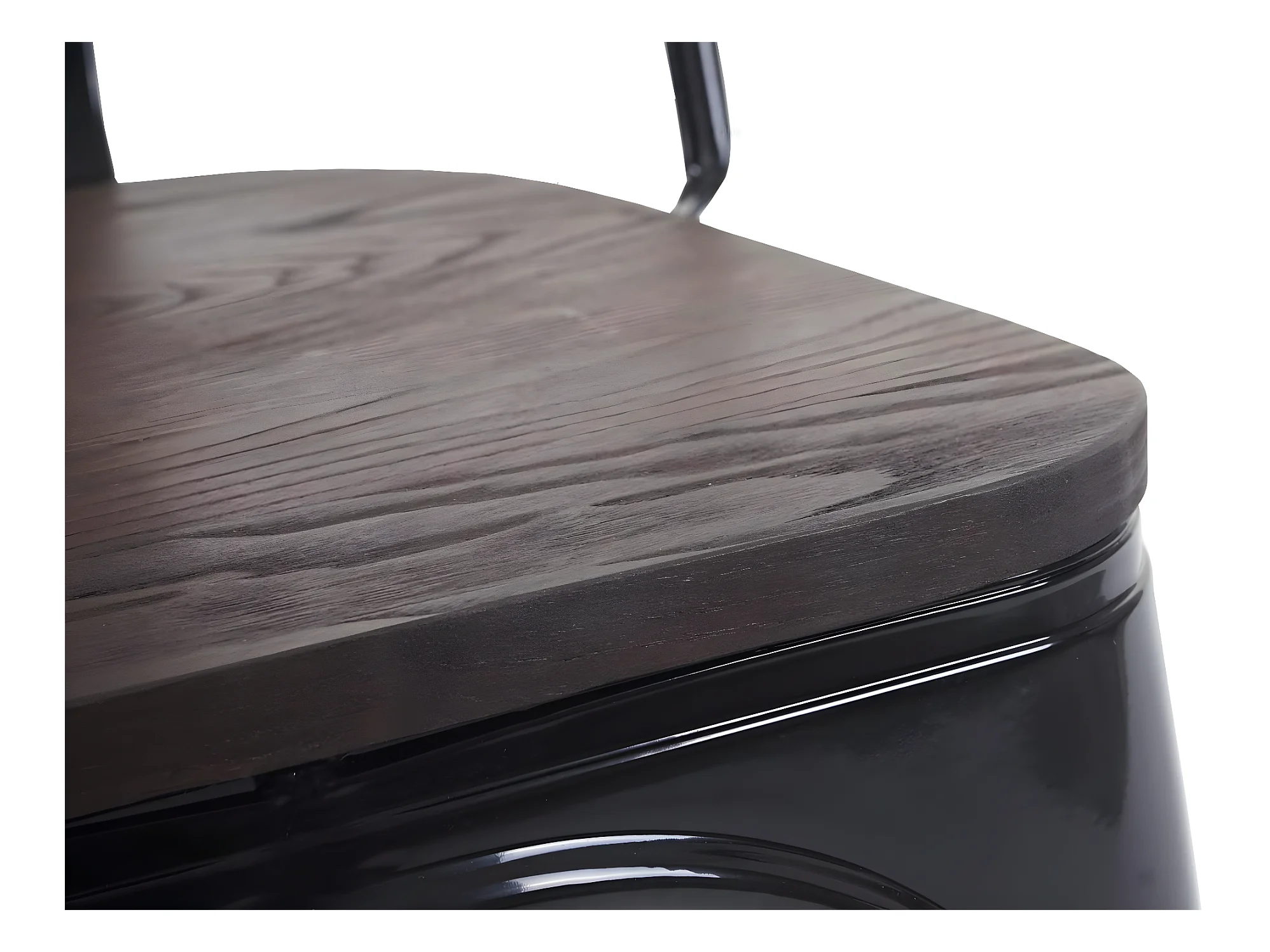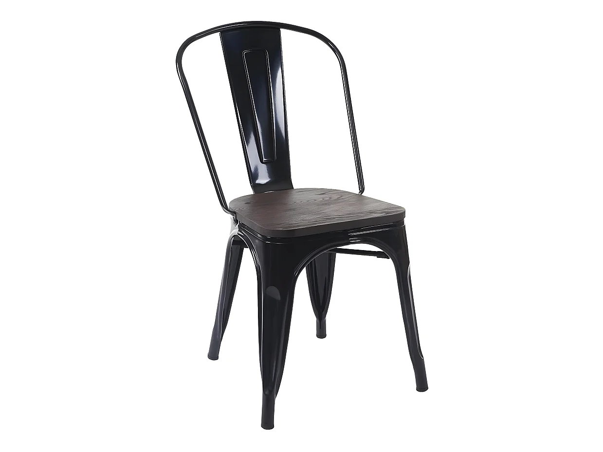 2 chaises de salle à manger style industriel factory métal noir et assise en bois CDS04441
