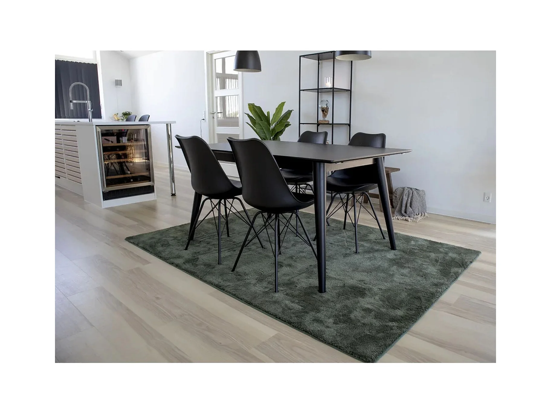 2 chaises de table à manger en cuir noir aux pieds noirs