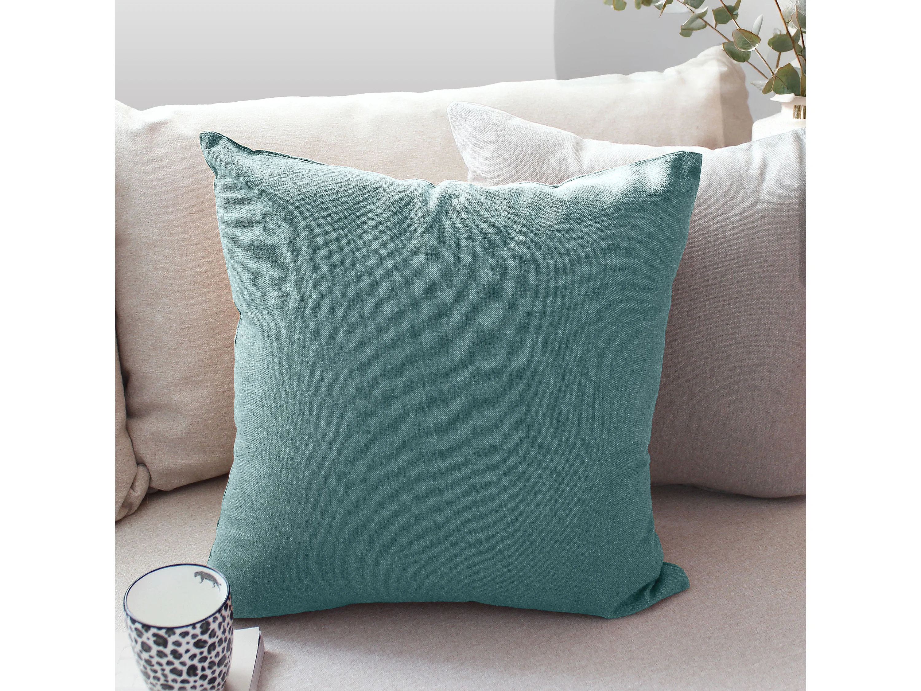 2 coussins carré déhoussable, 40x40cm, bleu glacier, coton chambray, Collection Cambria, CMADECO