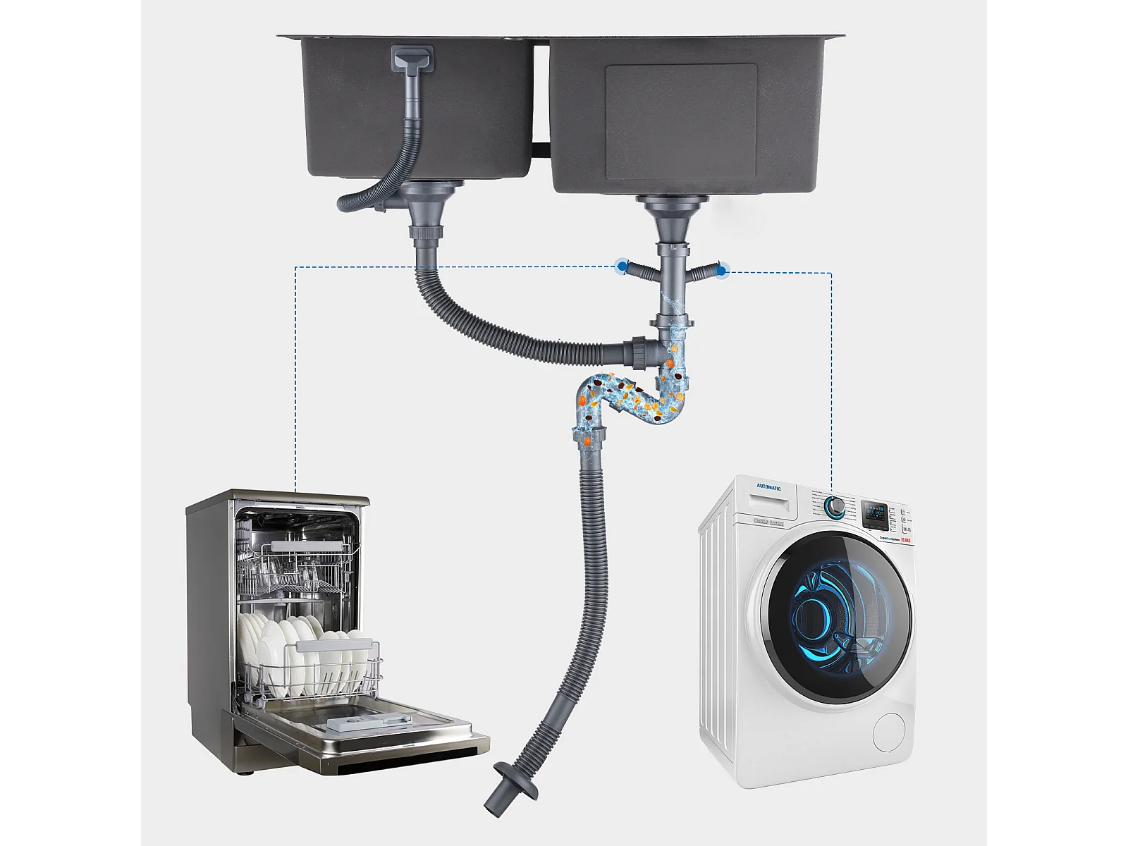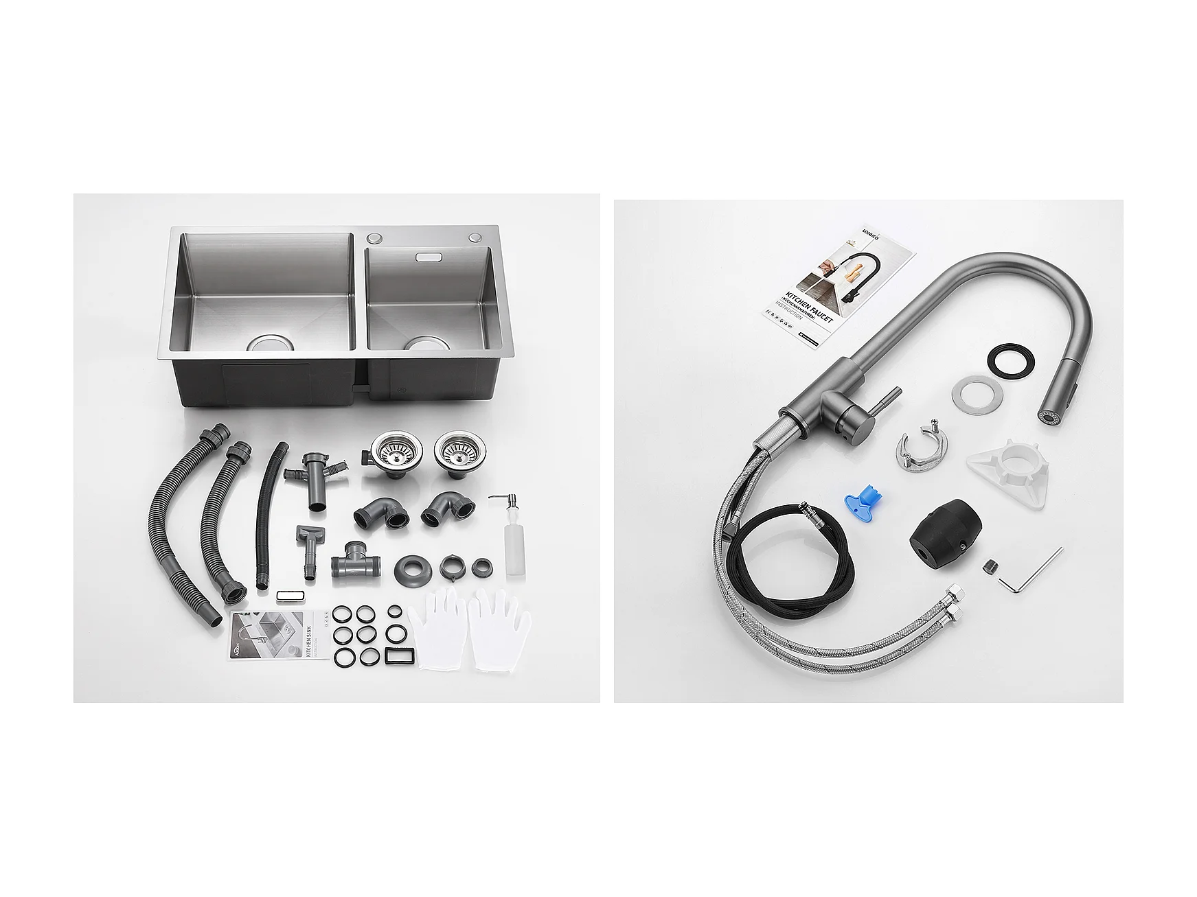 2 en 1 Évier de Cuisine 2 Bac 75x45x19cm, Encastré/ à Poser avec Distributeur de Savon+Robinet Cuisine Douchette Extractible Rotatif (Gris Foncé)