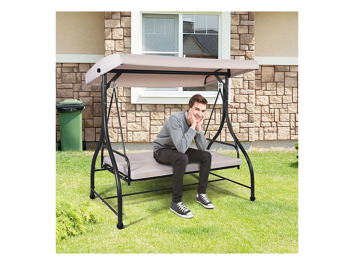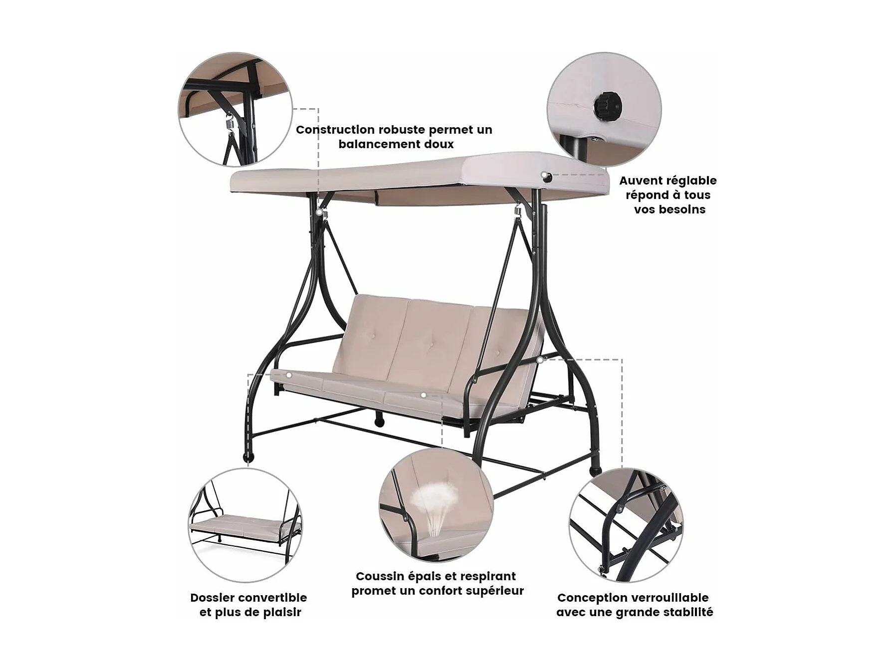 2 en 1 Jardin Balançoire Bain de Soleil, 3 Places avec Toit Réglable, Balancelle de Jardin, Dossier Ergonomique, pour Cour, Jardin, Balcon, 112x183x178 cm