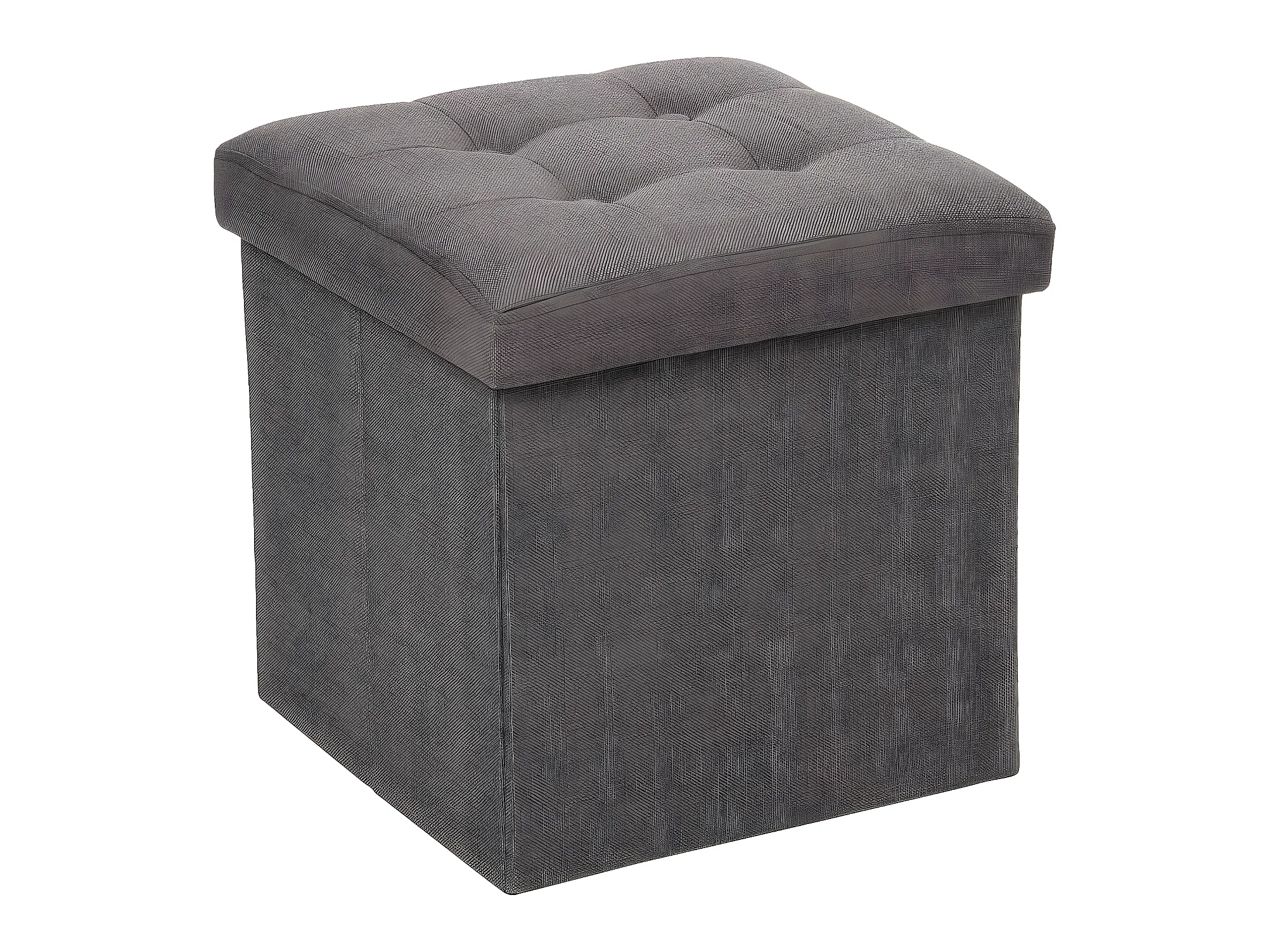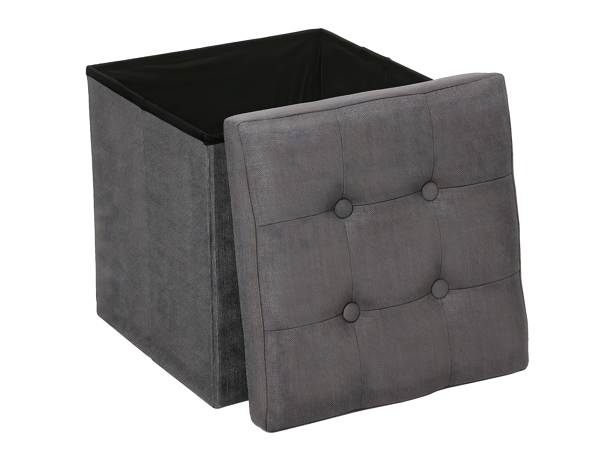 2 en 1 Pouf pliant et coffre de rangement Gris Taupe aspect Lin 38 x 38 cm