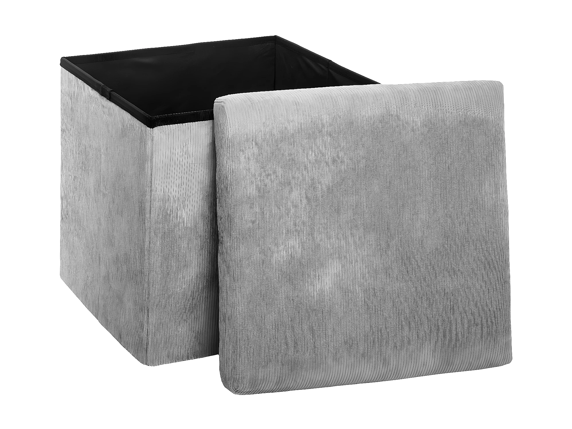 2 en 1 Pouf pliant et Coffre de rangement Velours côtelé Gris H 38 cm