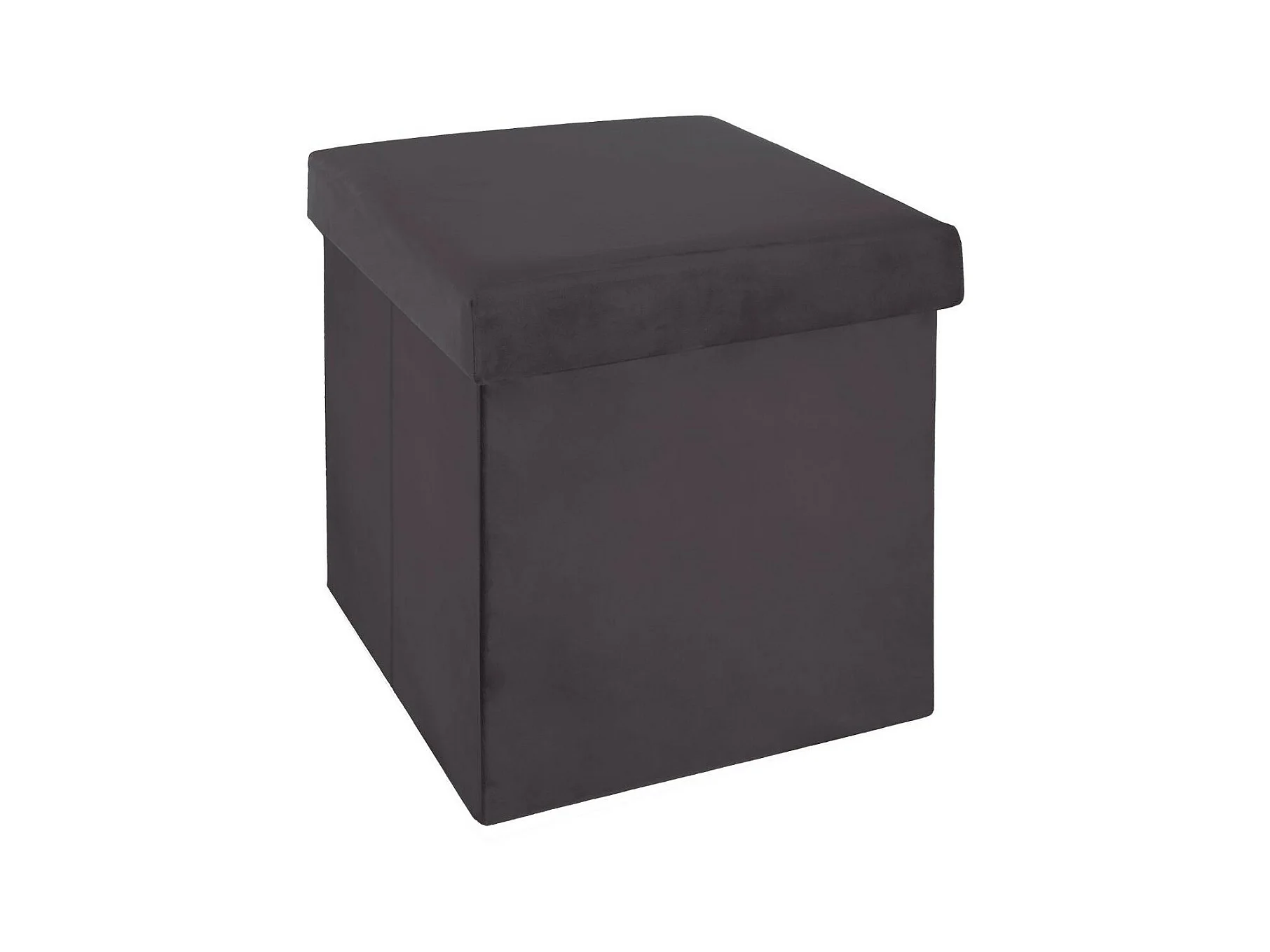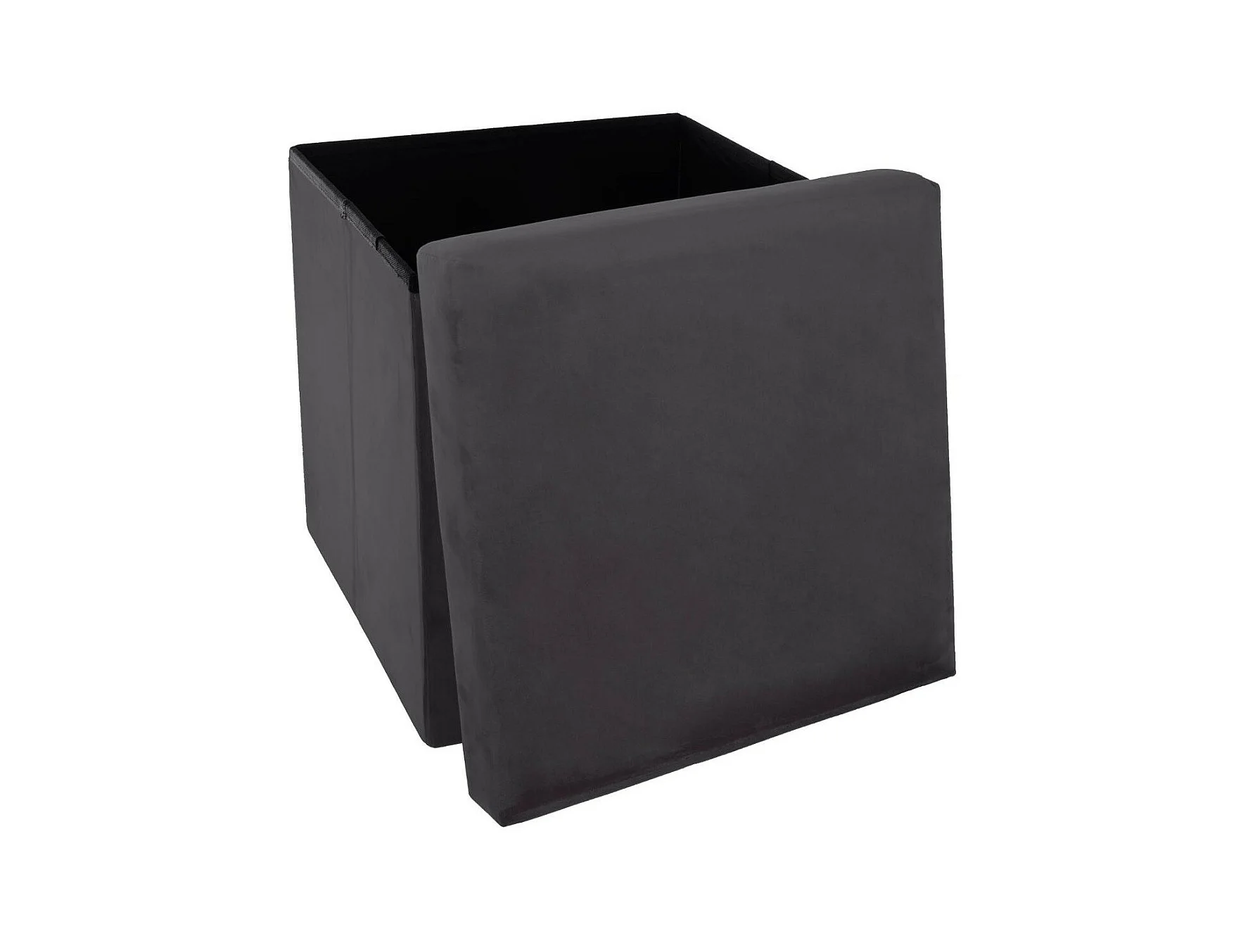 2 en 1 Pouf pliant et coffre de rangement Velours Gris foncé 38 x 38 cm