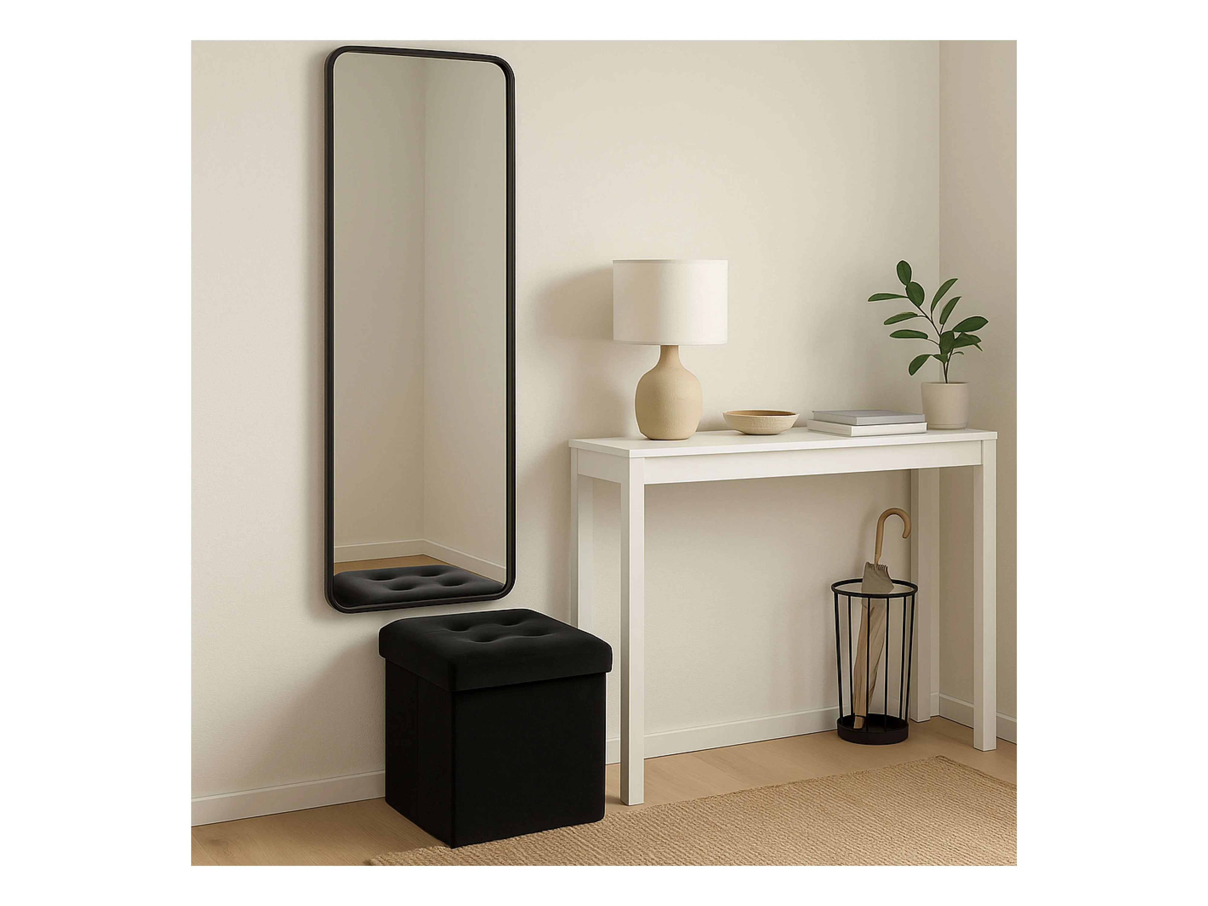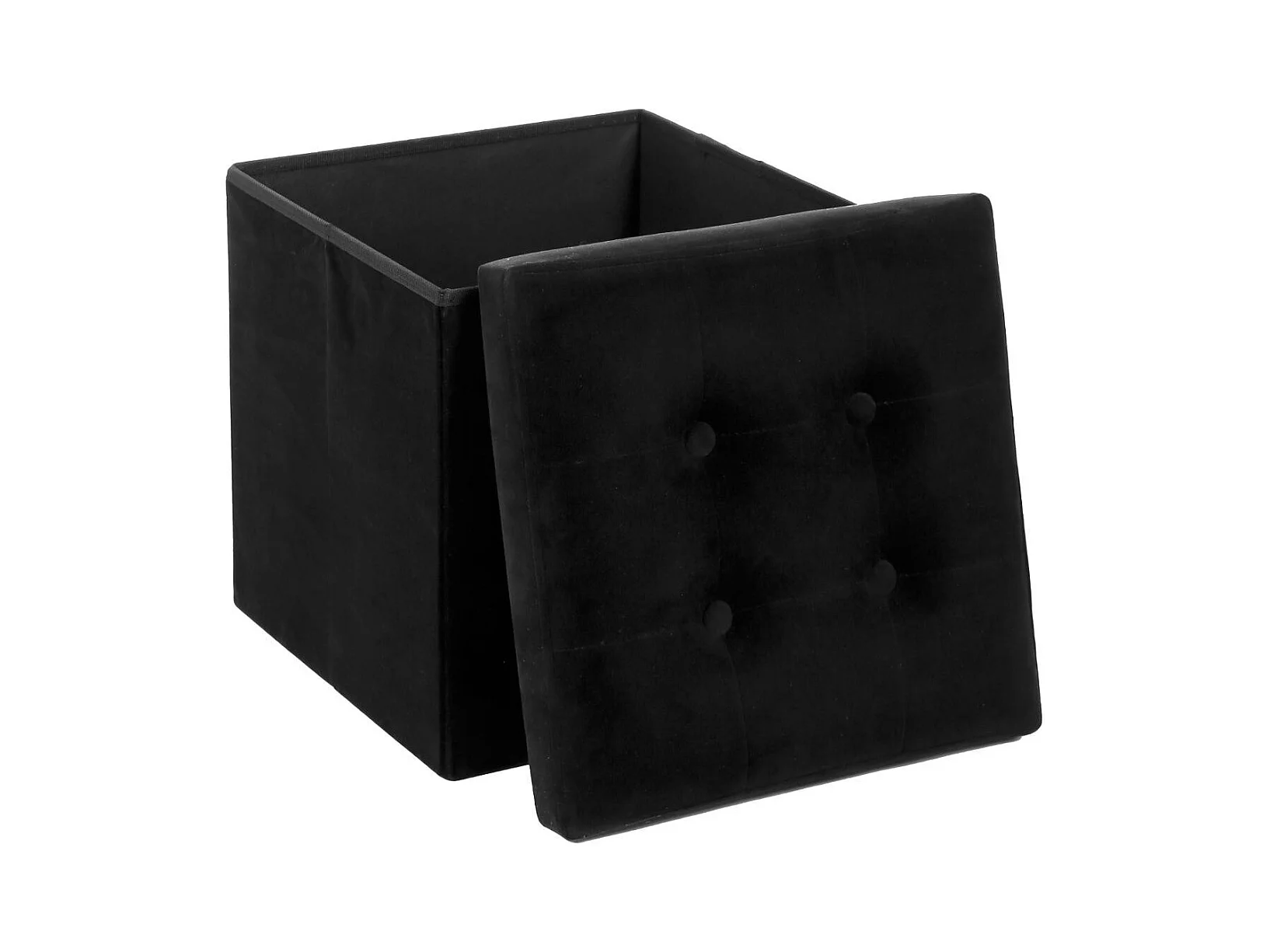 2 en 1 Pouf pliant et coffre de rangement Velours Noir 38 x 38 cm
