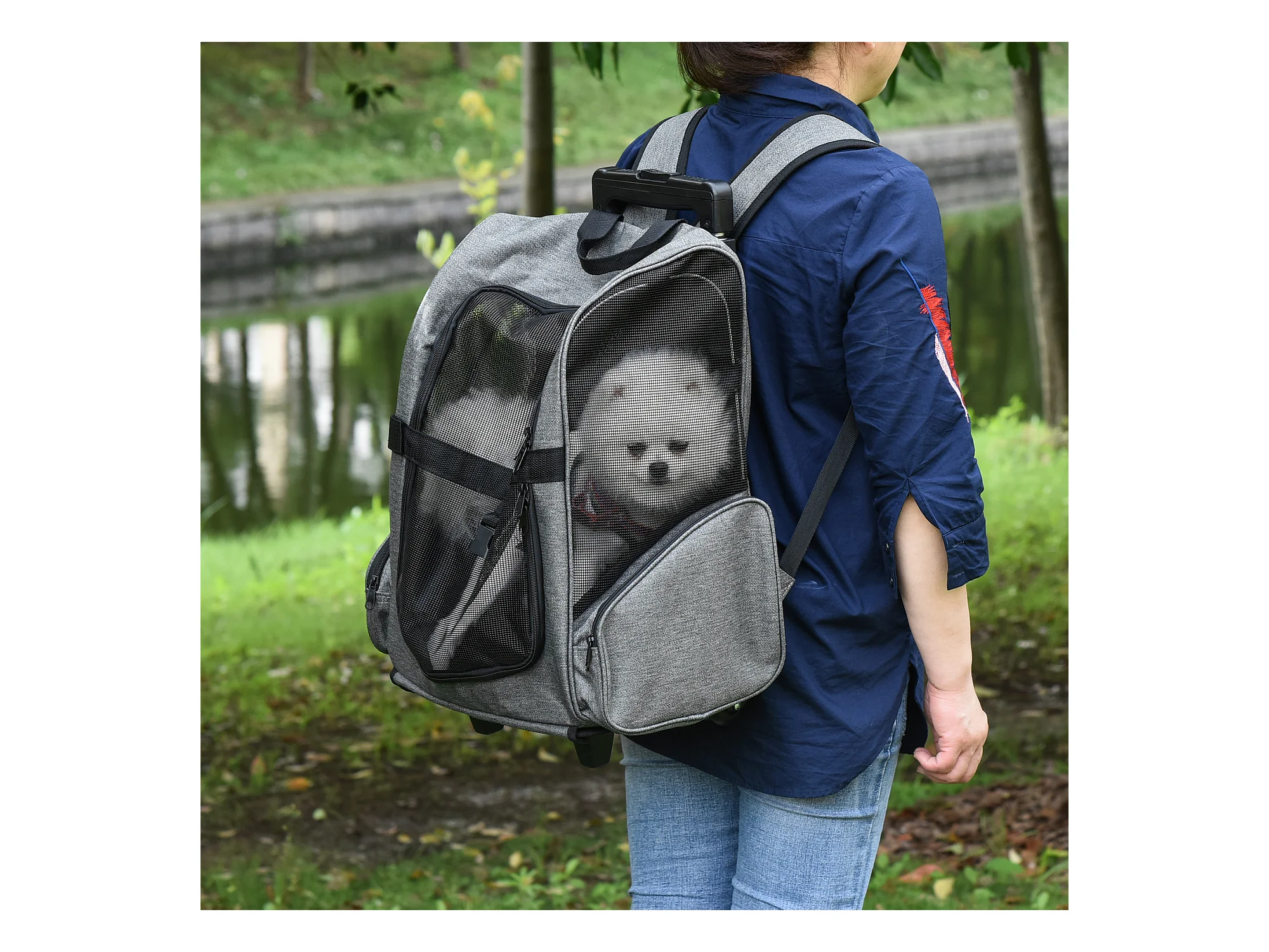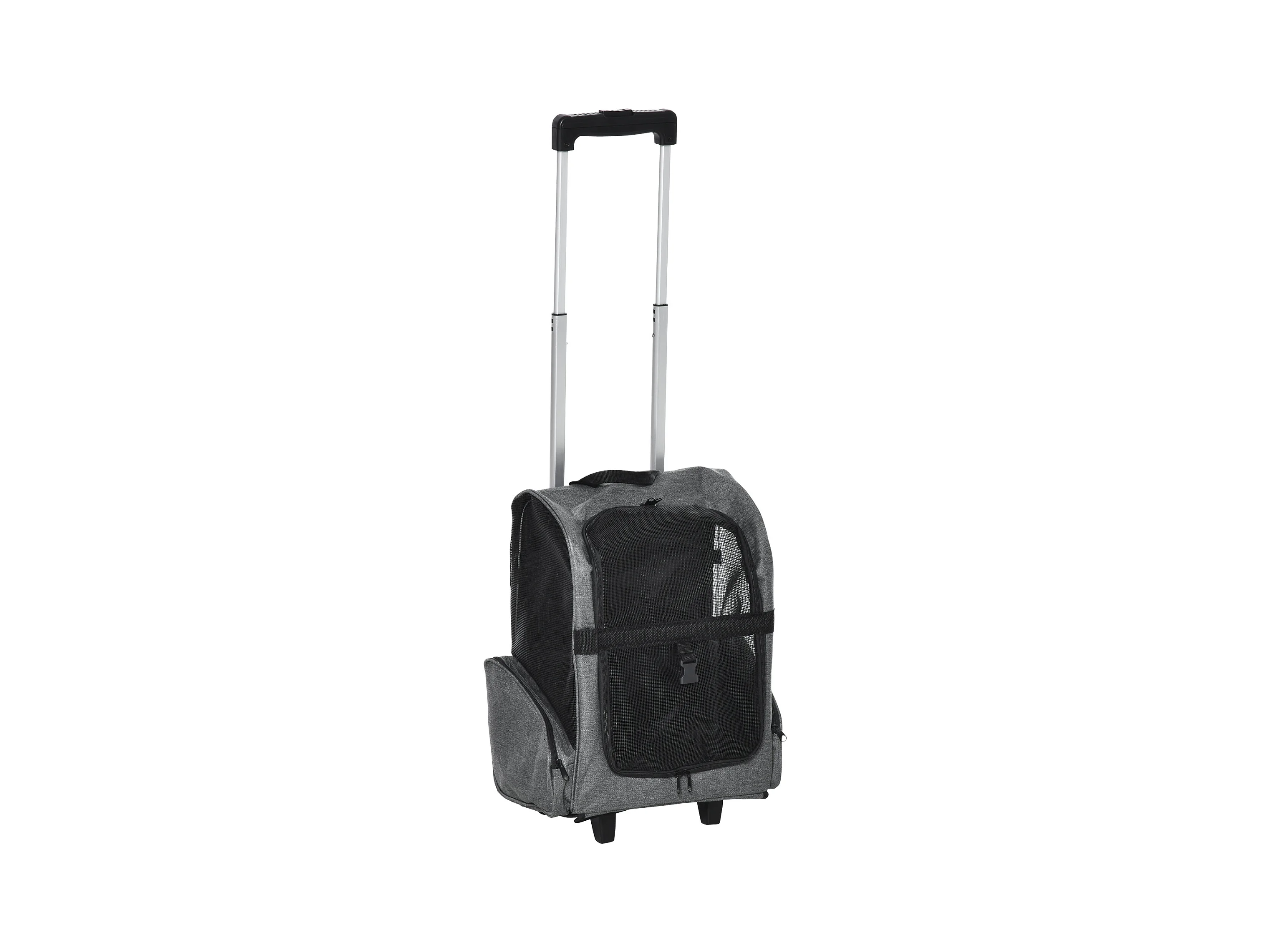 2 en 1 trolley chariot sac à dos sac de transport à roulettes pour chien chat gris