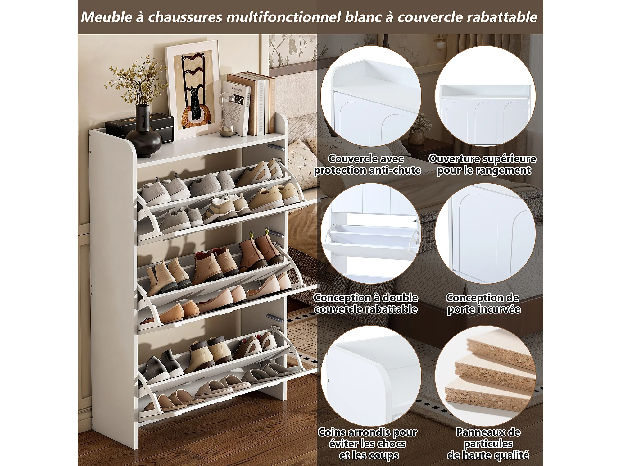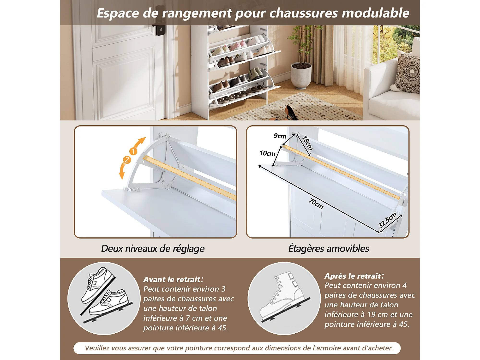 2 Meuble à chaussures moderne - 2 x 70 x 25 x 120 cm - avec 6 compartiments - pour les entrées et salons - MDF - blanc