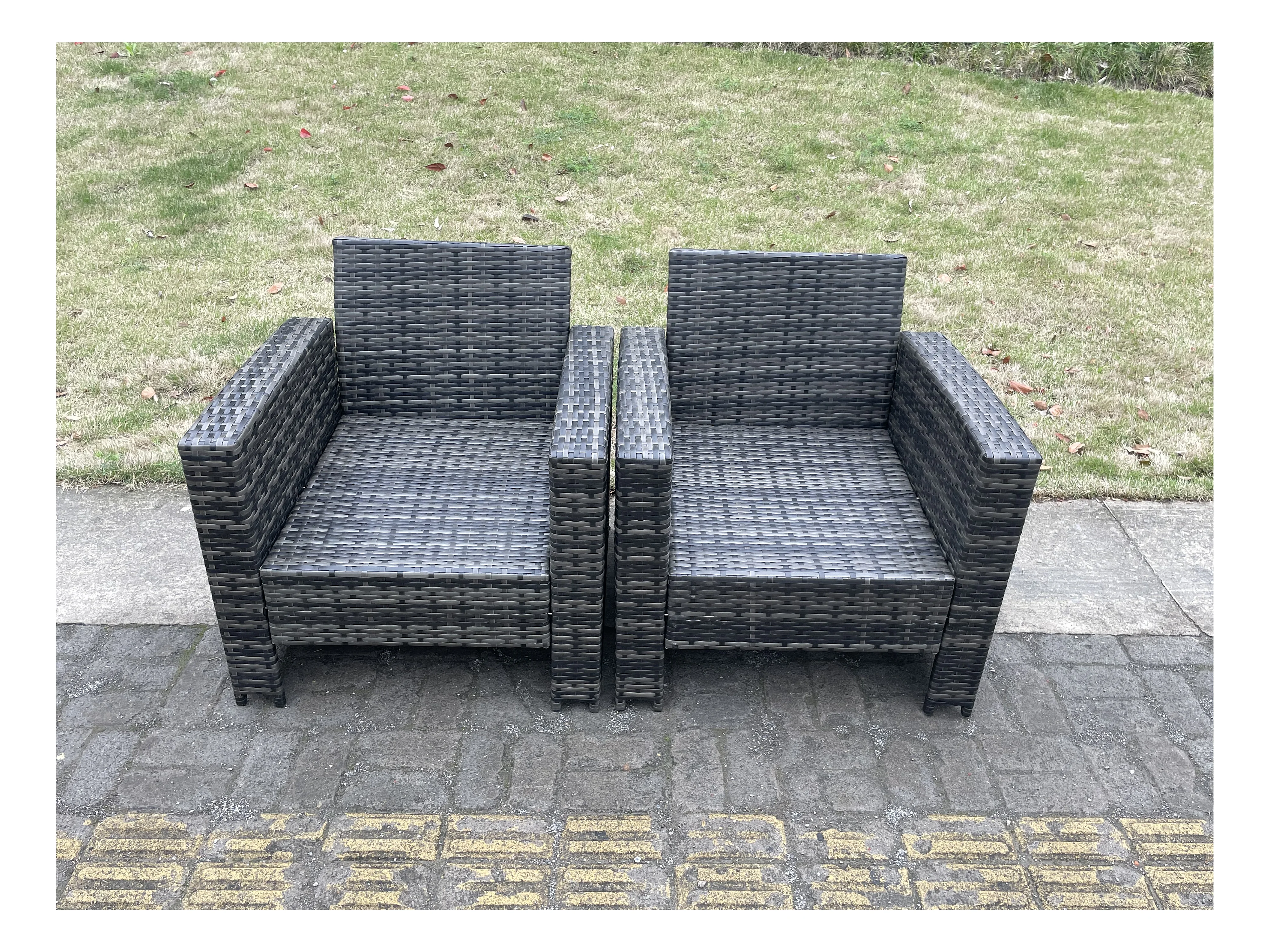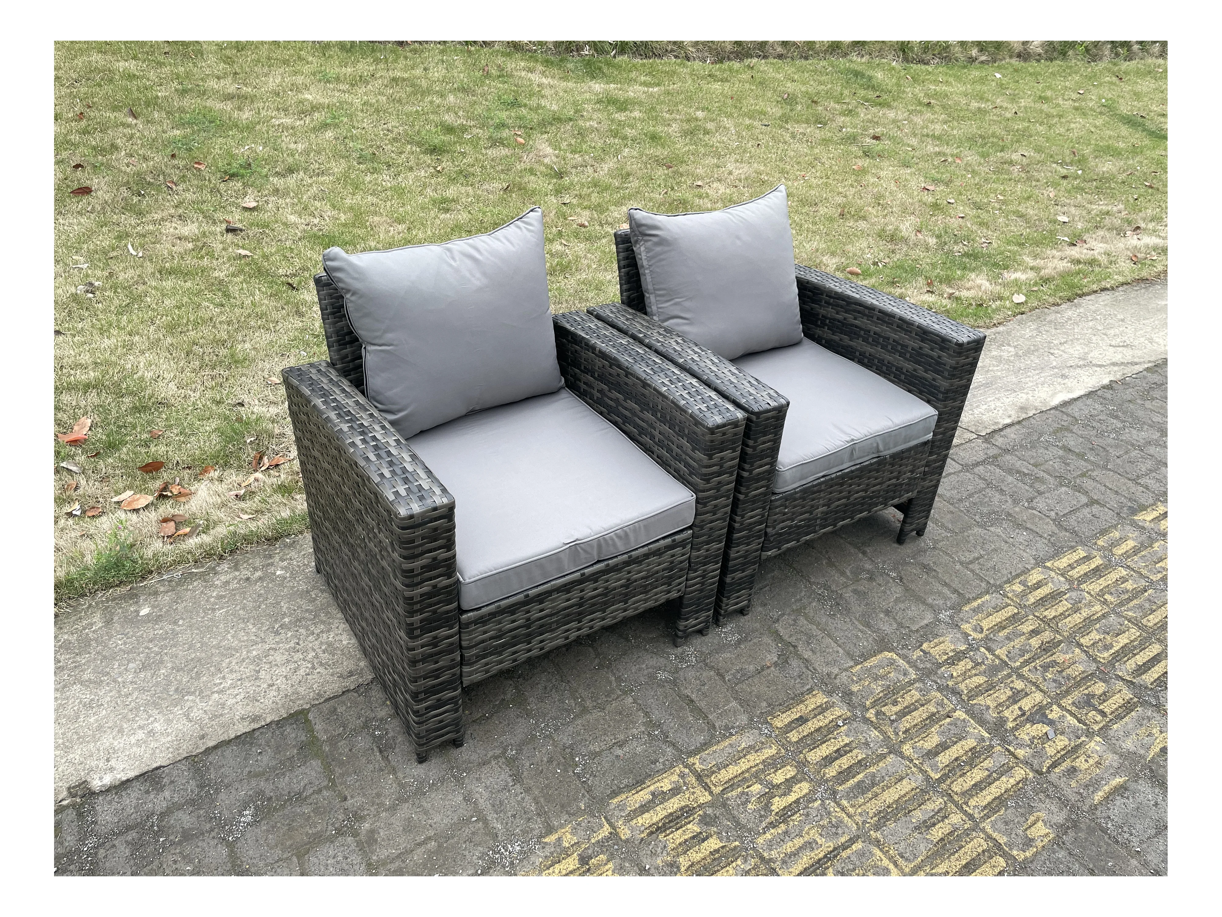 2 PC Fauteuil de jardin en rotin Gris foncé mixte