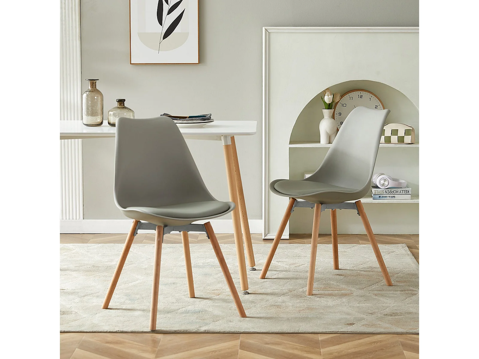 Lot de 2 Chaises design contemporain nordique scandinave - pieds en bois de hetre massif - Gris