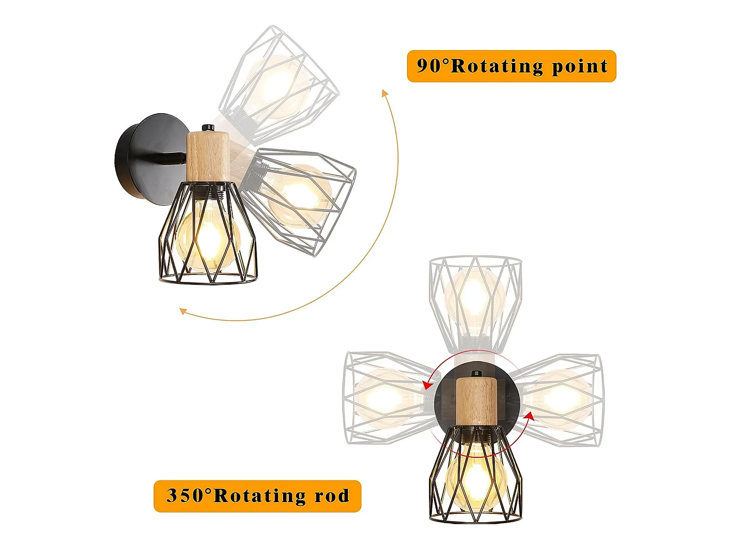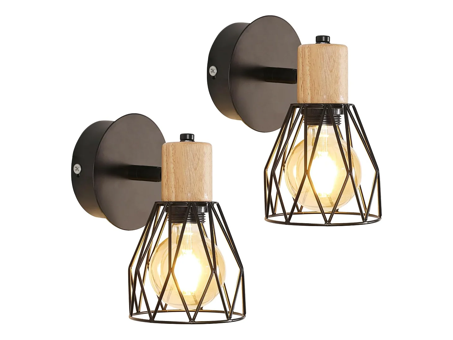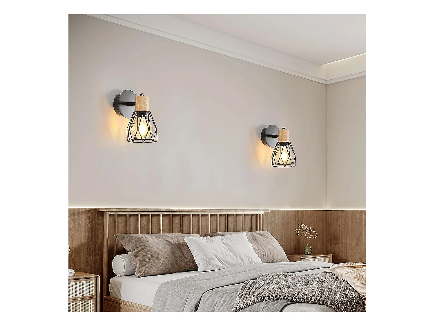 2 pièces applique murale intérieur bois vintage lampe murale e27 base pour chambre à couch