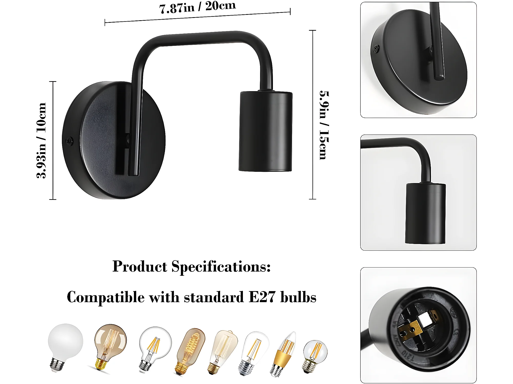 2 pièces applique murale intérieur vintage lampe murale e27 base pour chambre à coucher co