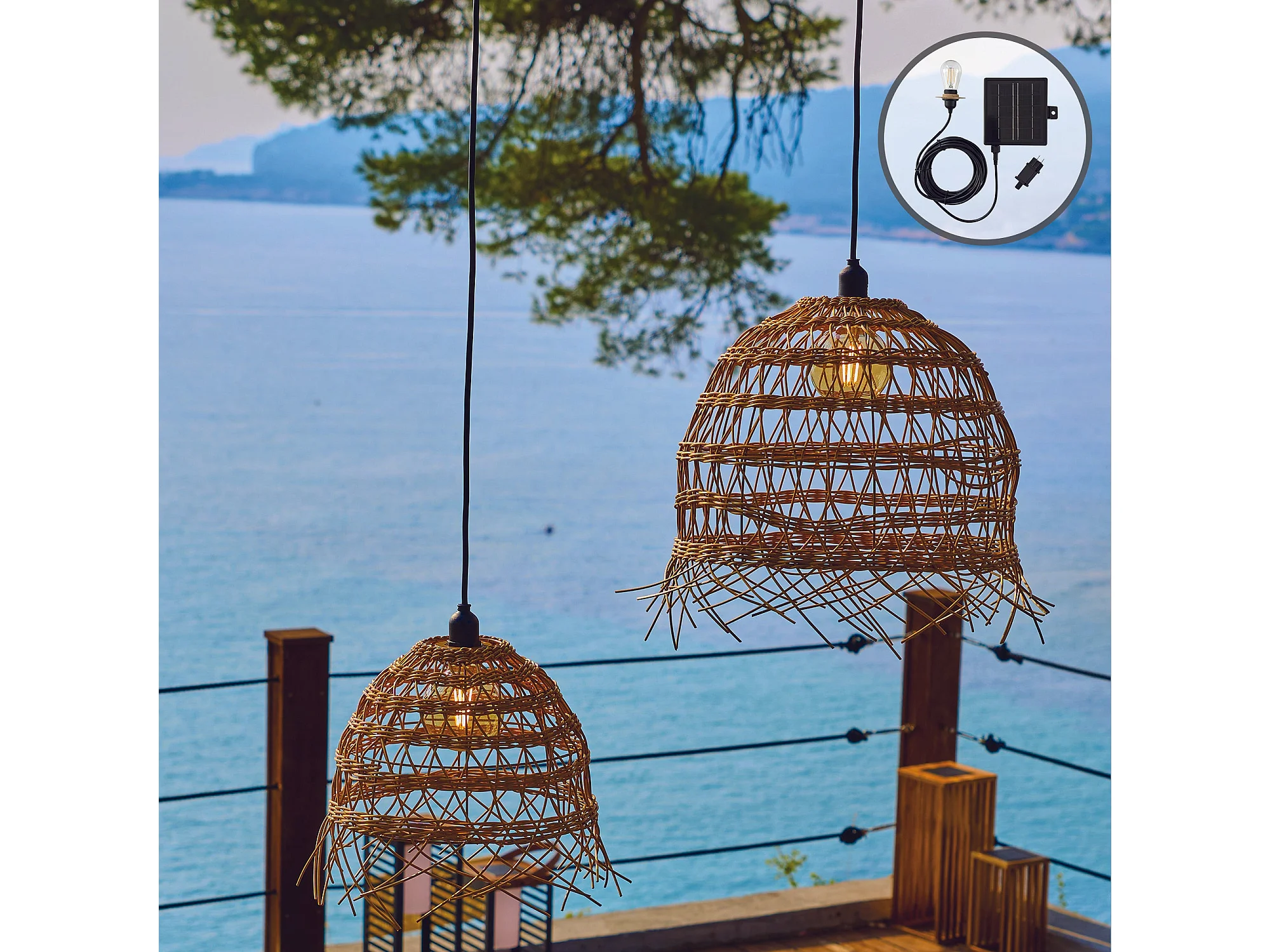2 Suspensions nomades HAWAII SOLAR H35 H45cm