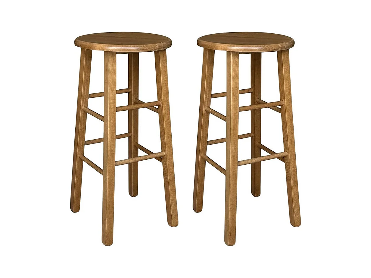 2 tabourets de bar ronds h 68 cm noyer clair pieds droits