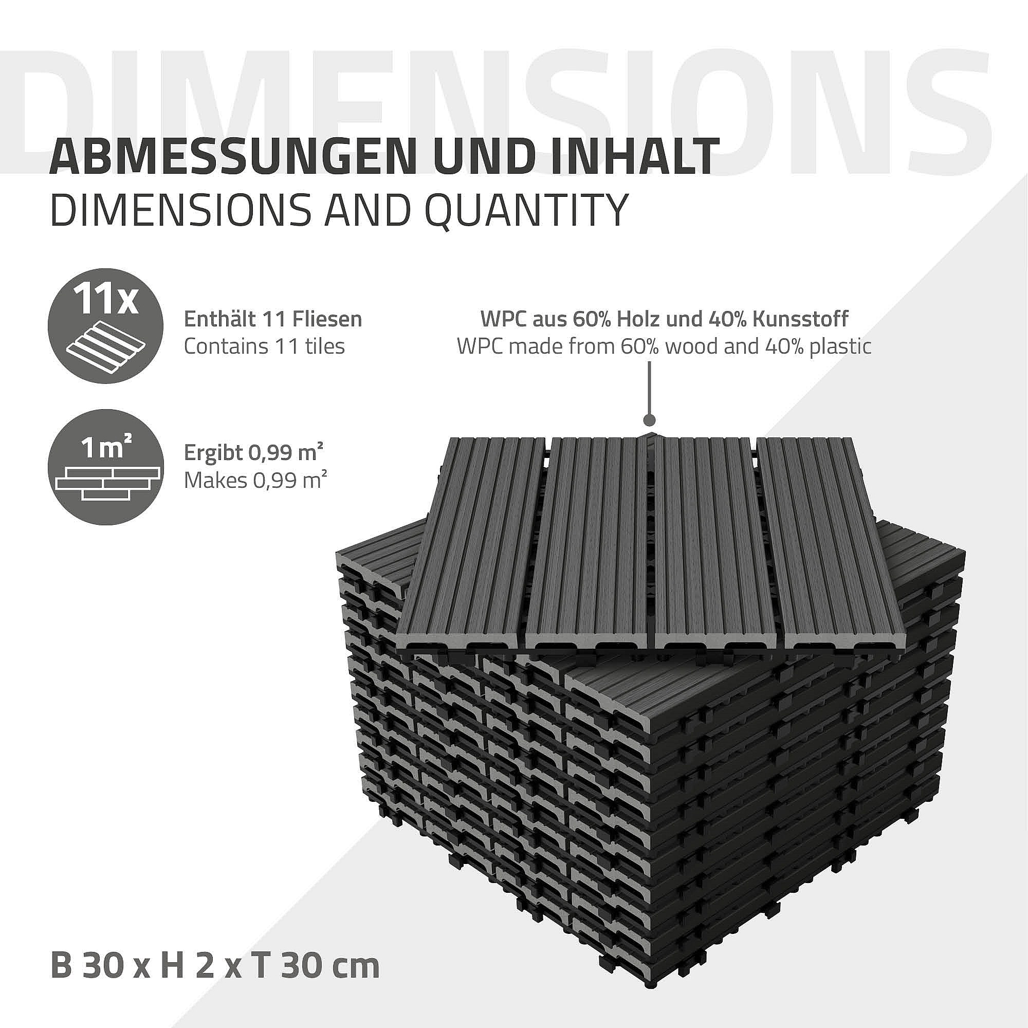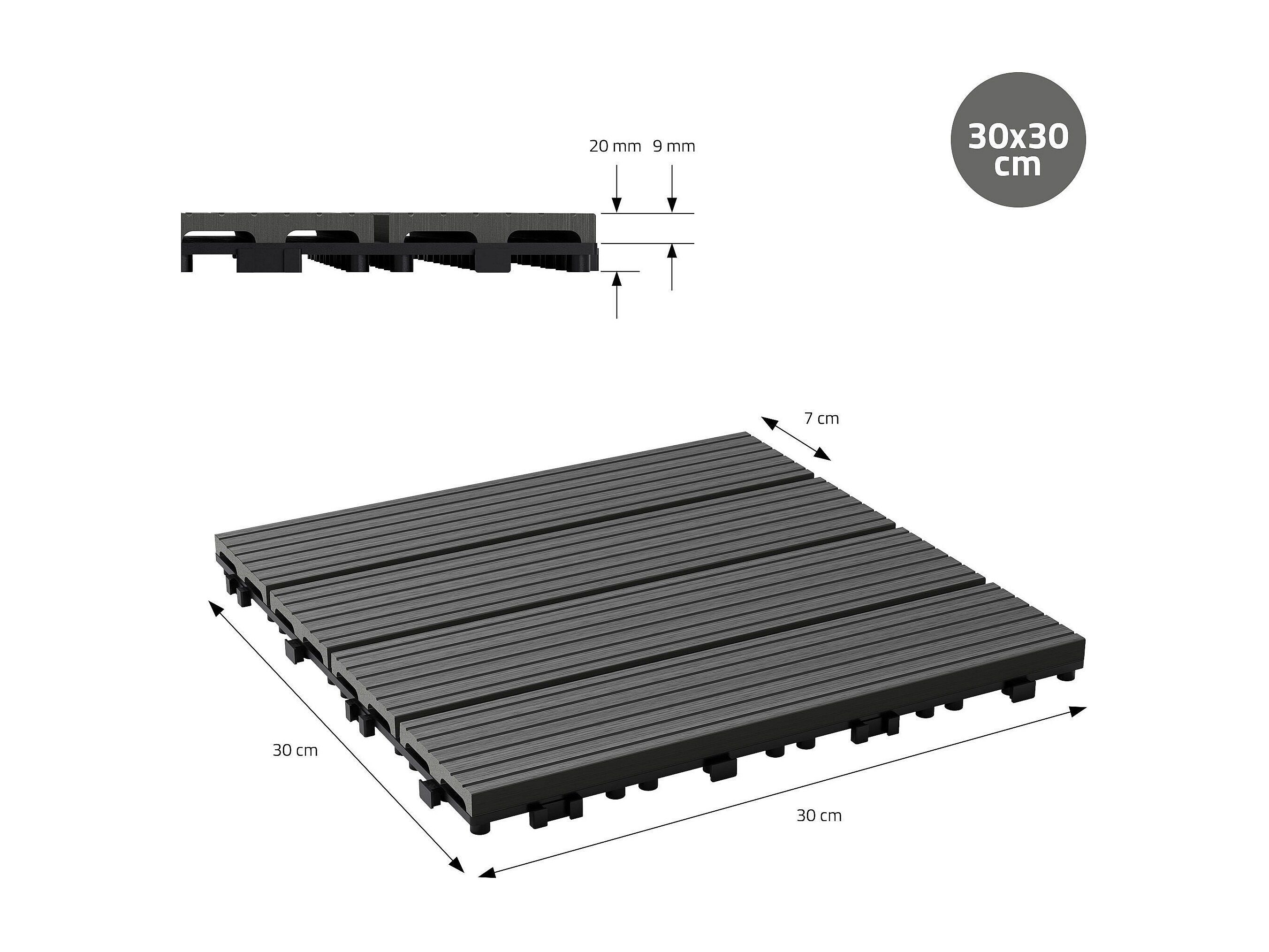 22x Carreaux de terrasse WPC 30x30cm 2m² carrelage revêtement de sol anthracite