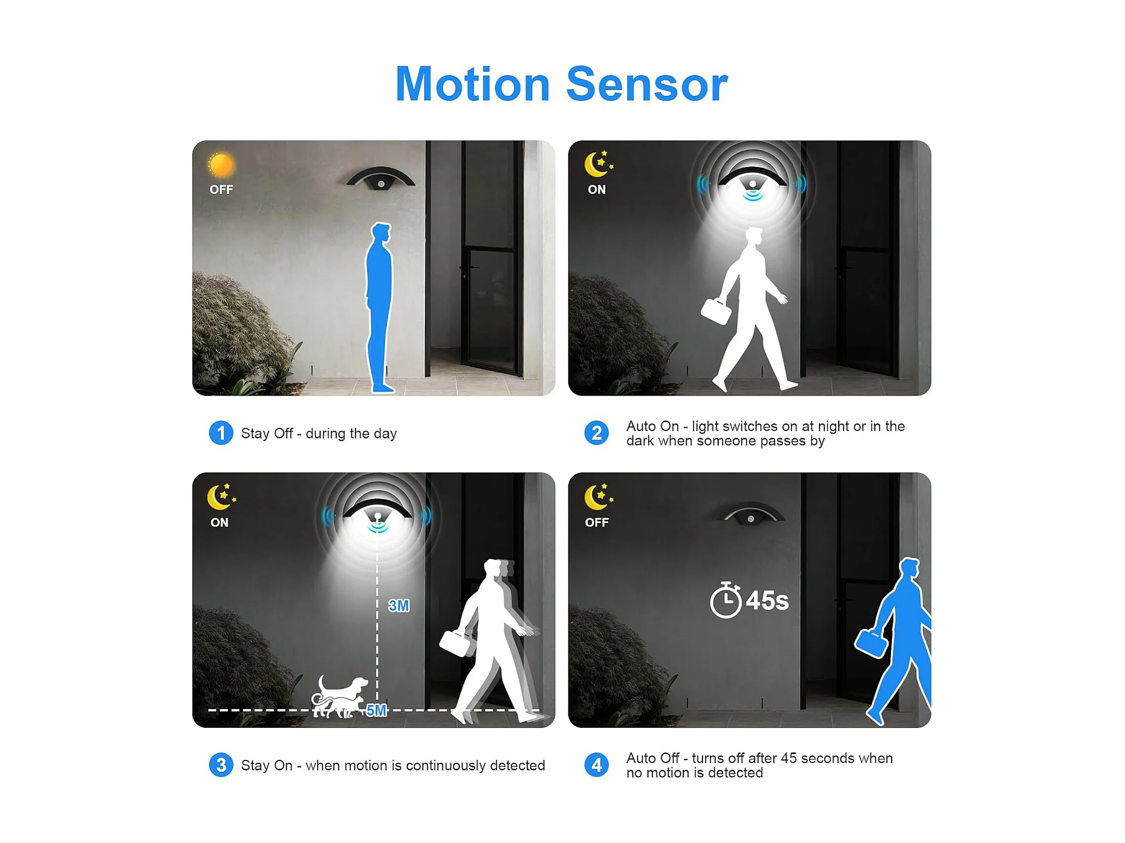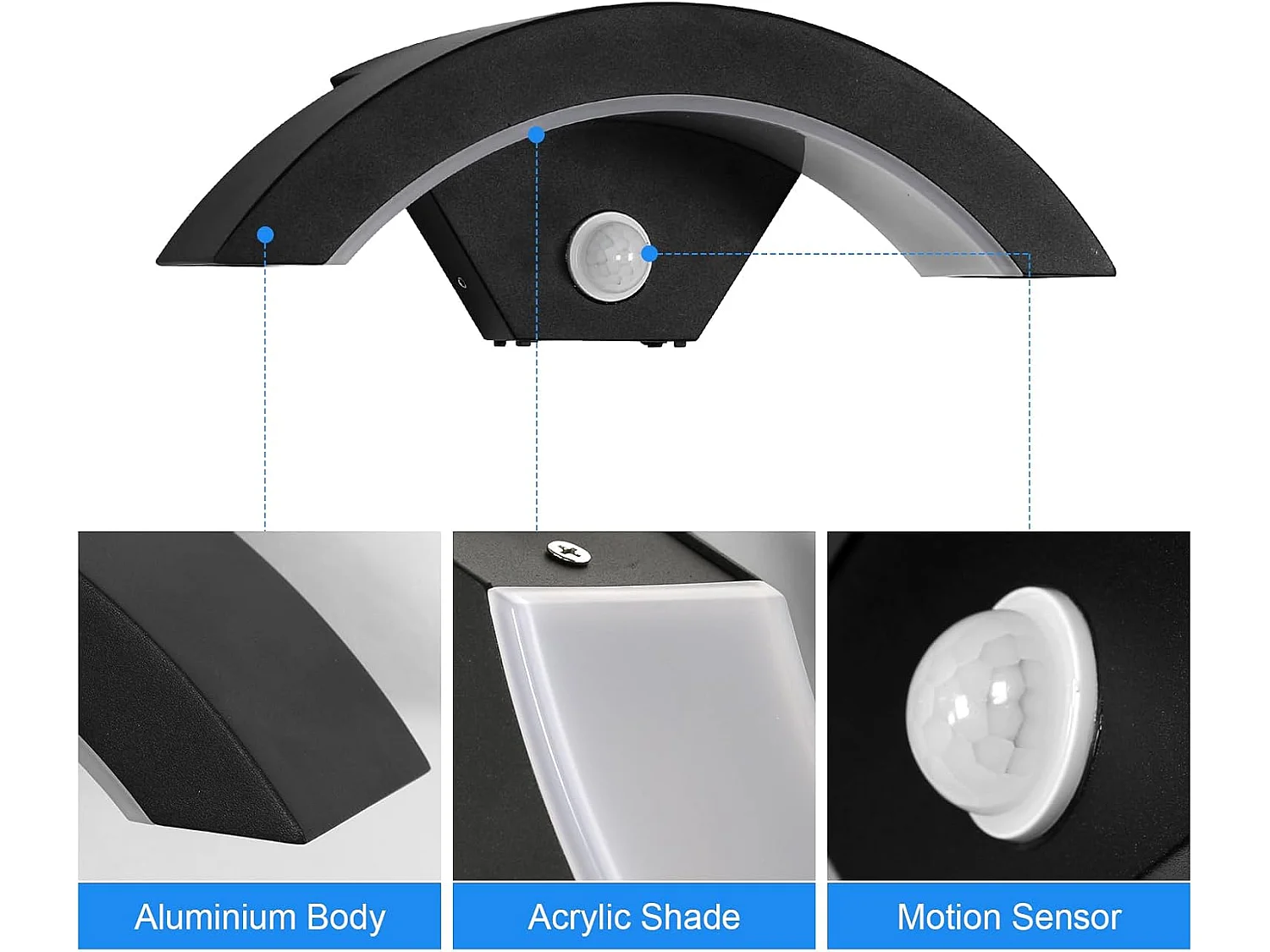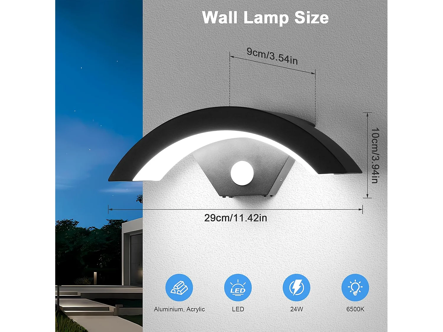 24W Applique Murale Exterieure avec Détecteur de Mouvement, Lampe Murale Moderne 6500K Étanche IP65, Projecteur LED Extérieur avec Détecteur, Noir