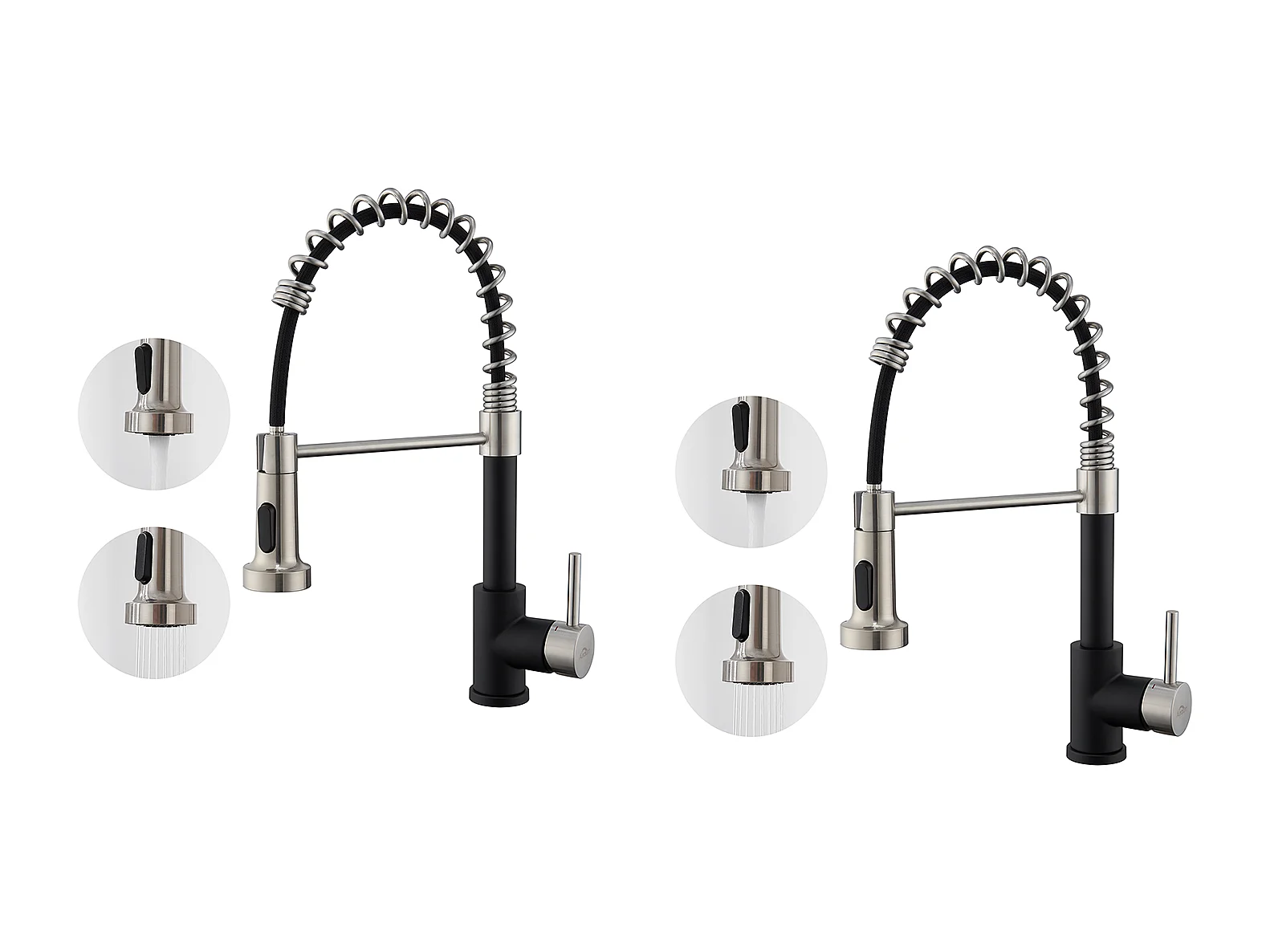 2PCS AURALUM MAX Mitigeur cuisine avec douchette Robinet Cuisine à Ressort Robinetterie cuisine Rotation 360°,2 Jets,Eau Froide/Chaude,Noir