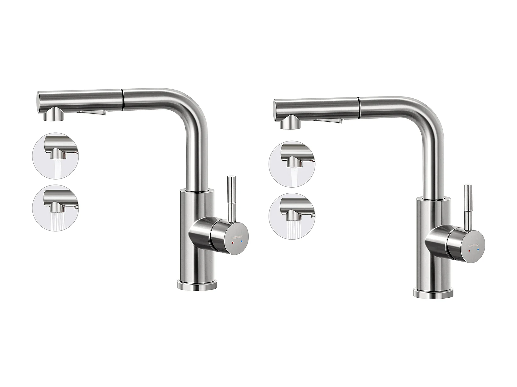 2PCS LONHEO MAX Robinet Cuisine 7-forme avec 2 Fonctions Douchette Extractible Mitigeur Cuisine en Inox Rotatif 360° avec Barboteur démotable,Brossé