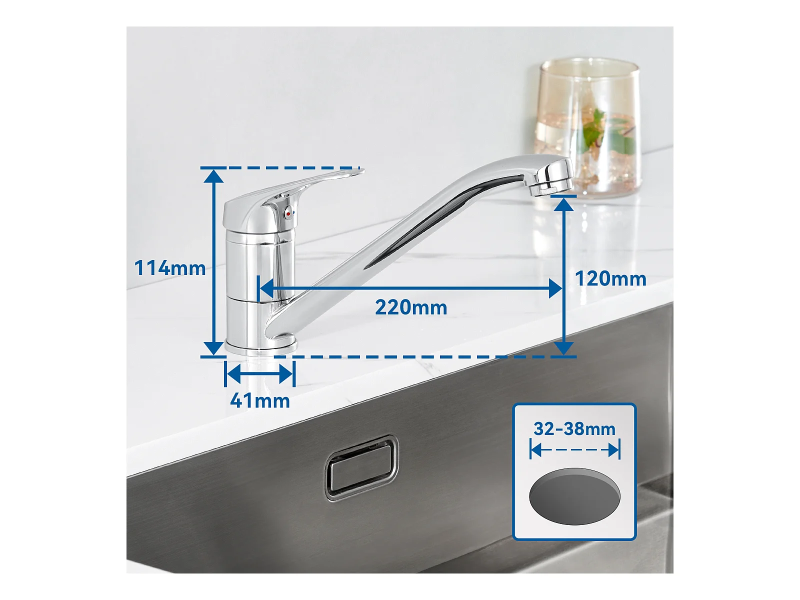 Robinet Cuisine Douchette Extractible,Mitigeur Cuisine en Inox avec Douchette 2 Modes Jet,Bec Bas, Pivotant à 360°, Eau Froid/ Chaud,Chromé