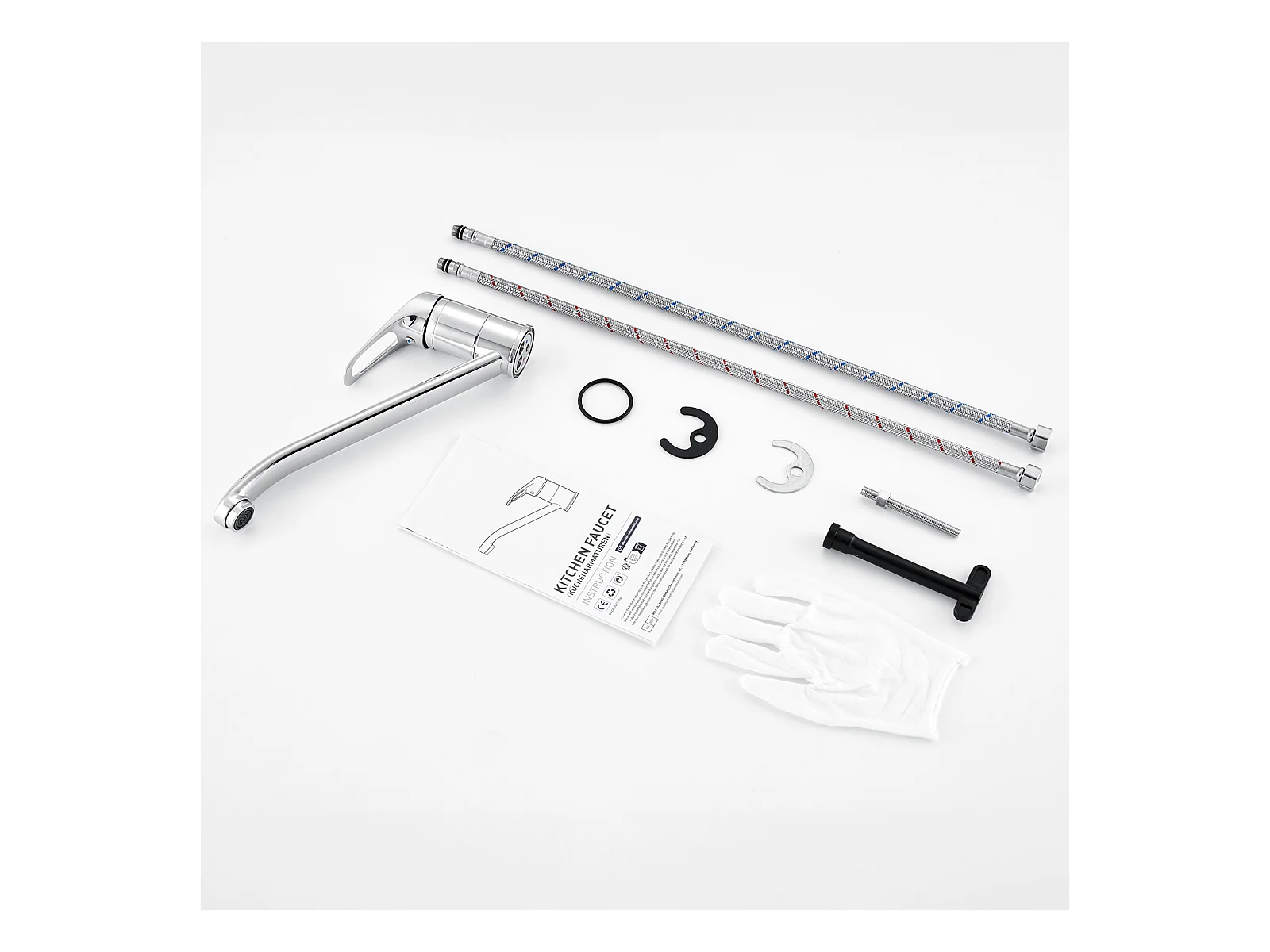 2pcs Mitigeur d'Evier, Robinet Cuisine Orientable à 360°,Les Conduites d'eau Chaude/Froide et Les Accessoires Sont Complets,en Laiton,Chromé