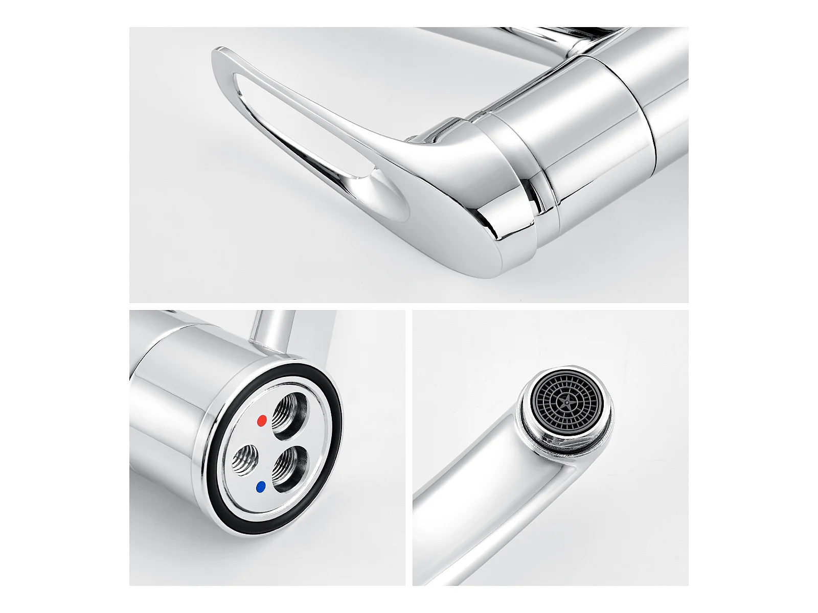2pcs Elégant Mitigeur de Cuisine Auralum max Chromé,Pivotant à 360° Robinet d'Évier en Laiton avec Eau Chaude/Froide pour Cuisine,Mousseur Démontable