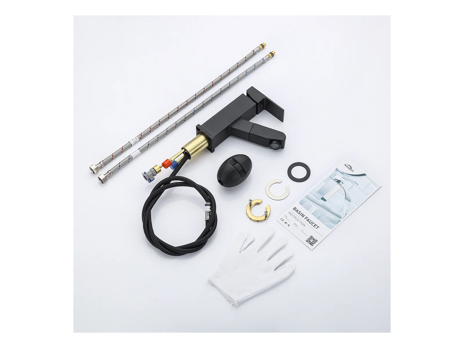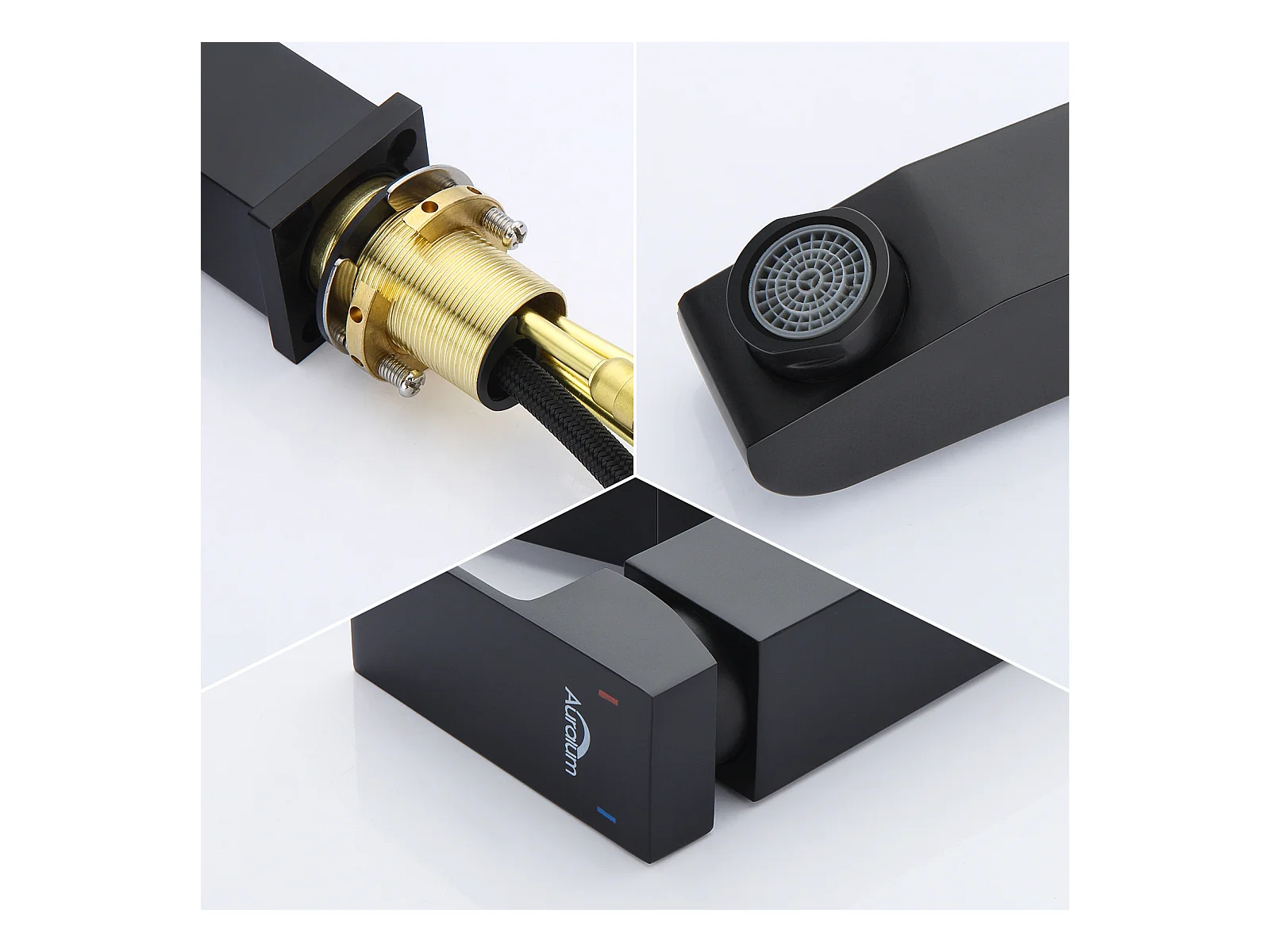 AuraLum Max Mitigeur Lavabo Noir avec Douchette Extractible Monotrou Robinet pour Lavabo et Vasque Salle de Bain Mitigeur Eau/Froide,EU Modèle