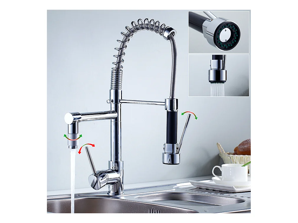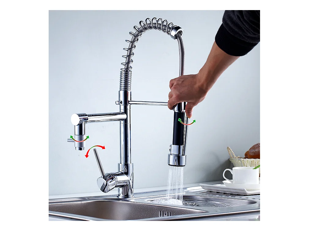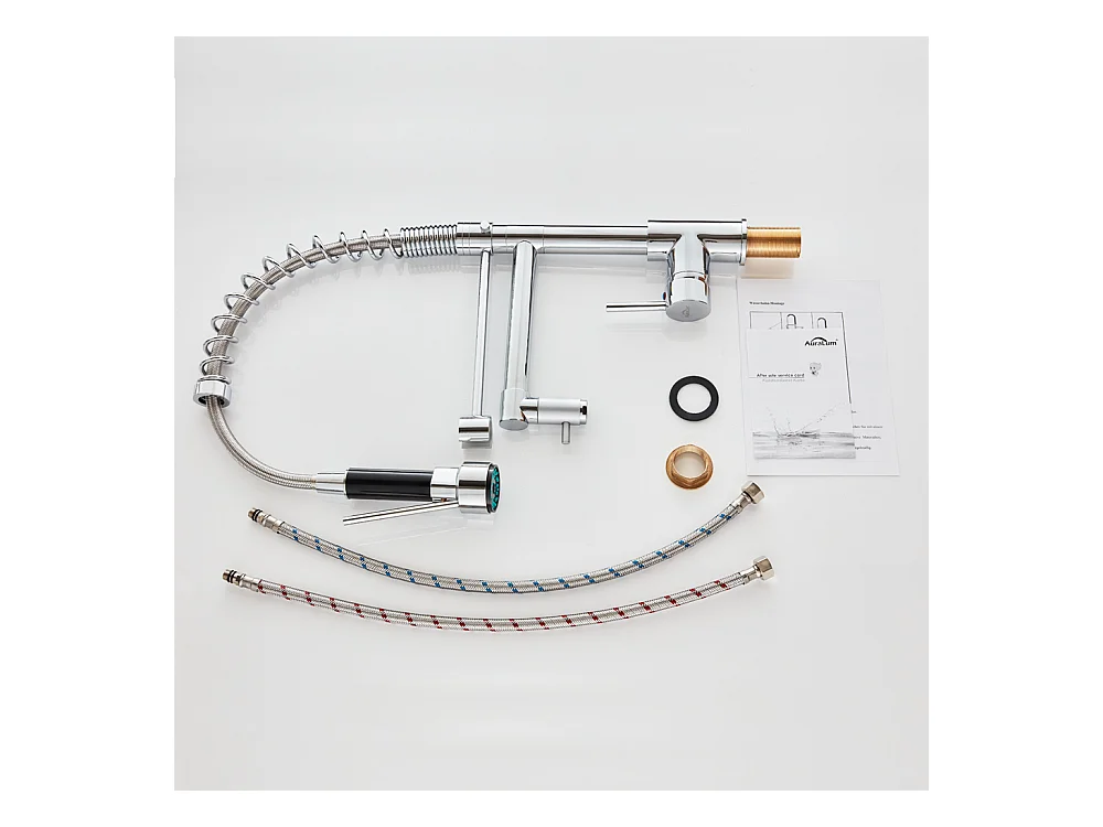 2pcs Robinet Cuisine Mitigeur avec Douchette Extractible Moderne Bec Haut en Laiton Rotatif 360°Robinetterie Rétractable évier 2 Jets Robinet