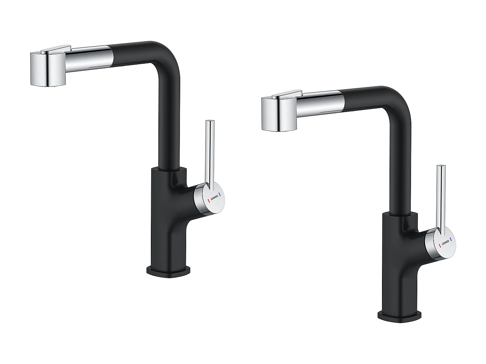 Lonheo Max Robinet de Cuisine Noir avec 40 CM Douchette Extractible Mitigeur Cuisine à 2 Jets Eau Froide/Chaude Mélangeur de Evier Cuisine,EU Modèle