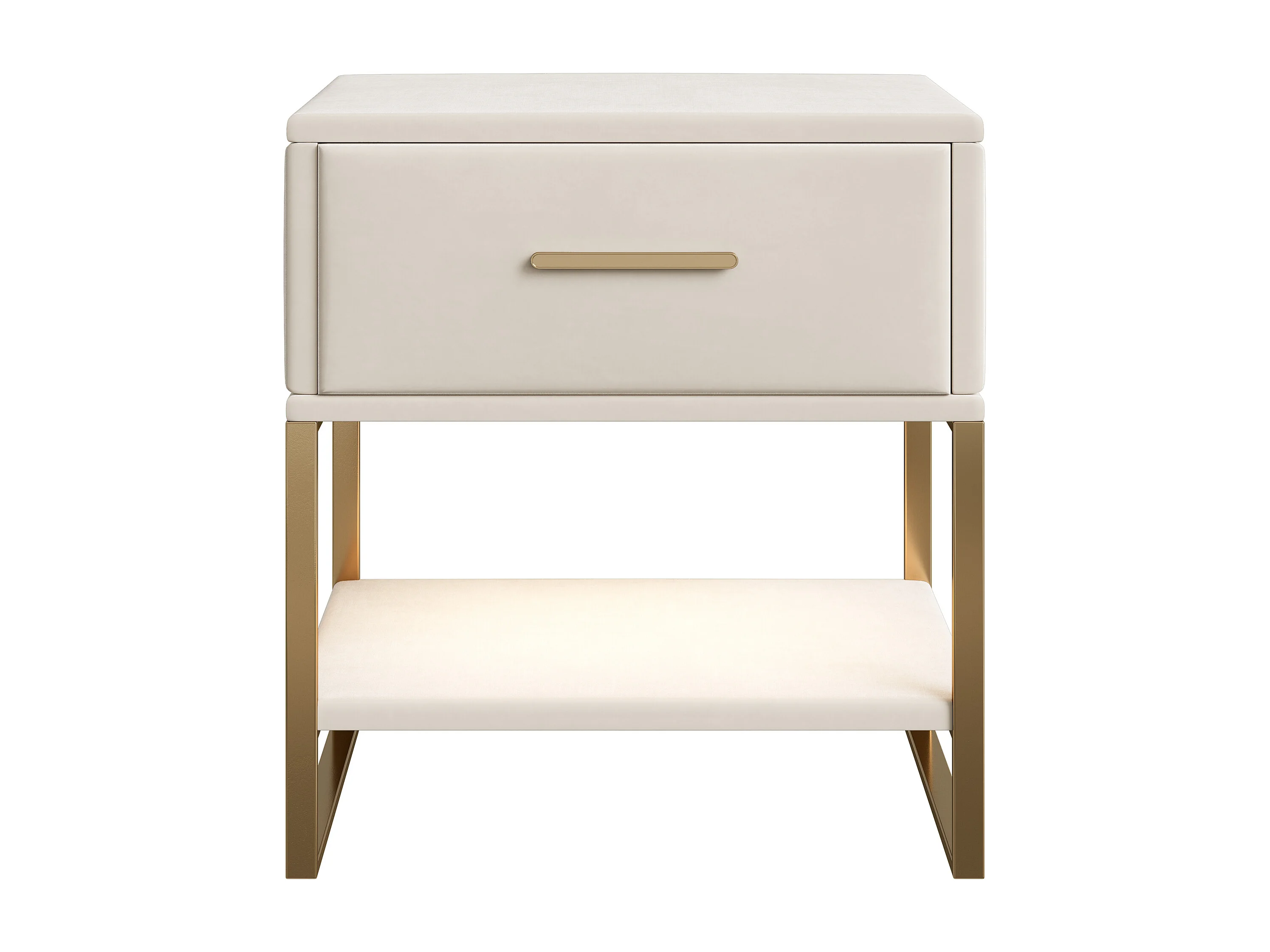 2pcs Table de chevet - Cabinet de côté - Velvet LED Light Table de côté avec 1 tiroir et 1 étagère ouverte - petite table latérale