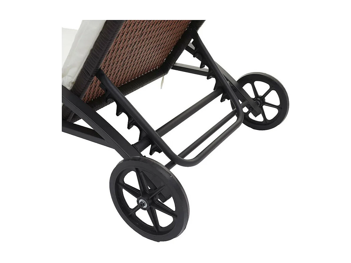 2x Chaises longues HWC-E27 en polyrotin - brun, coussins crème-beige