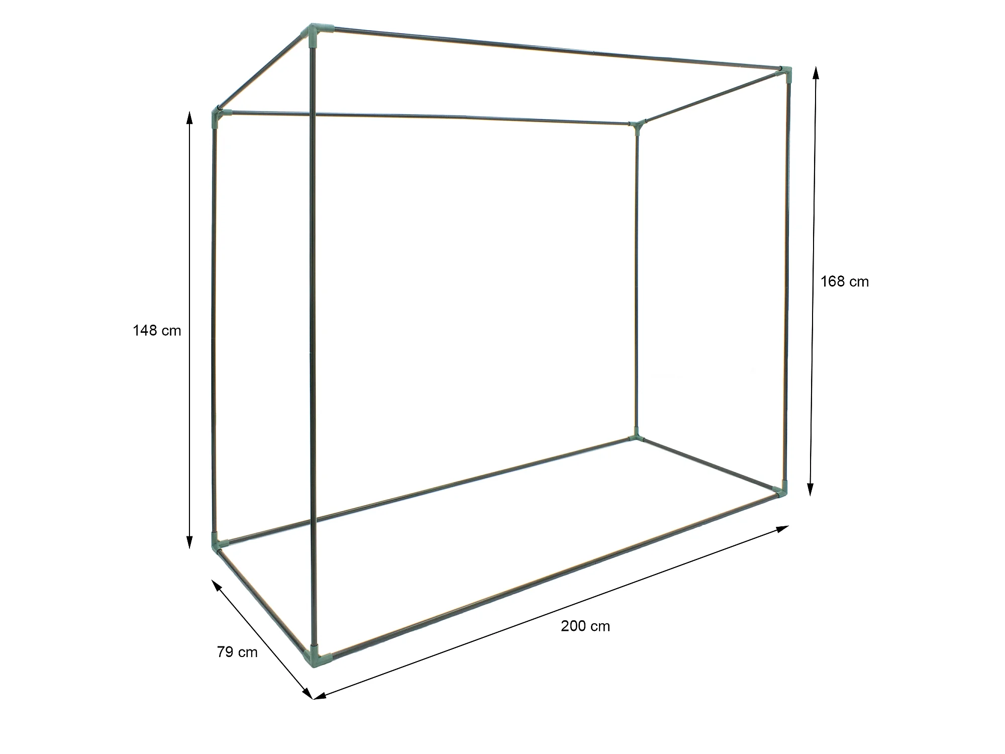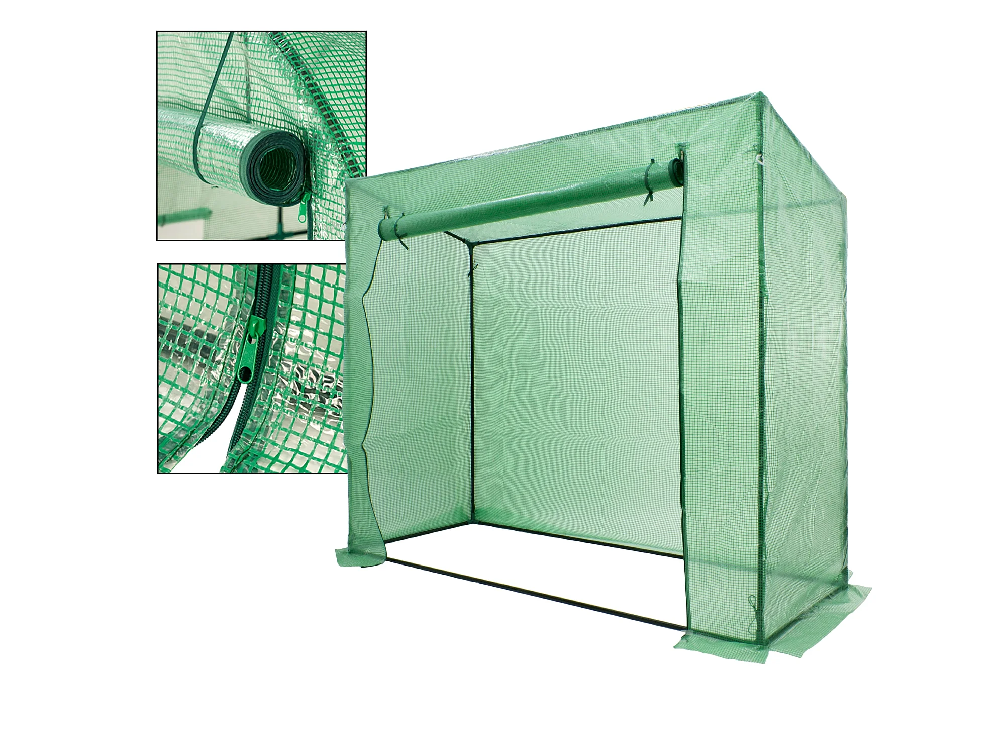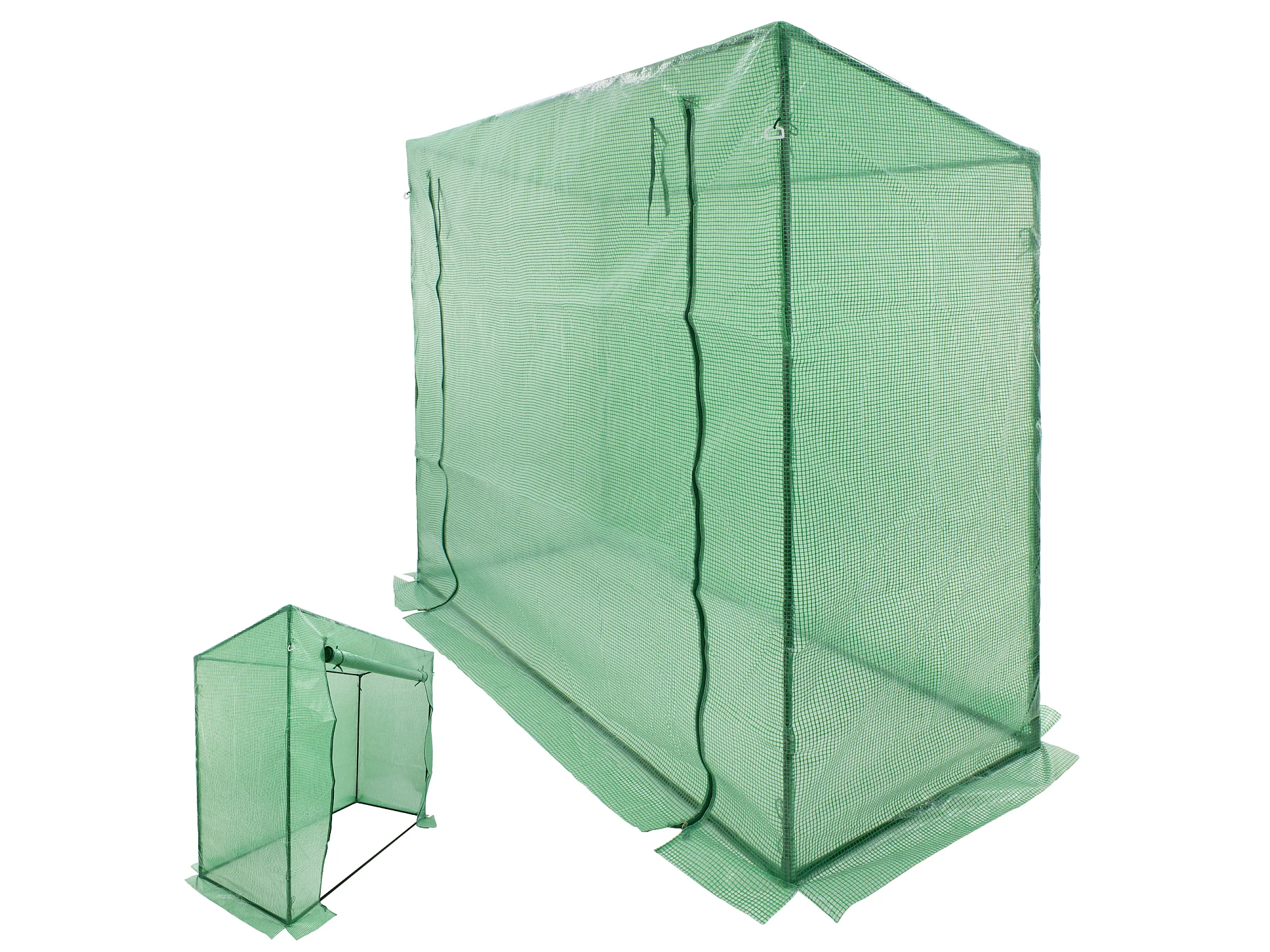 Serre de Jardin 200L x 73l x 168H cm acier PE haute densité 140 g/m² anti-UV avec porte zippée déroulante et fenêtres vert