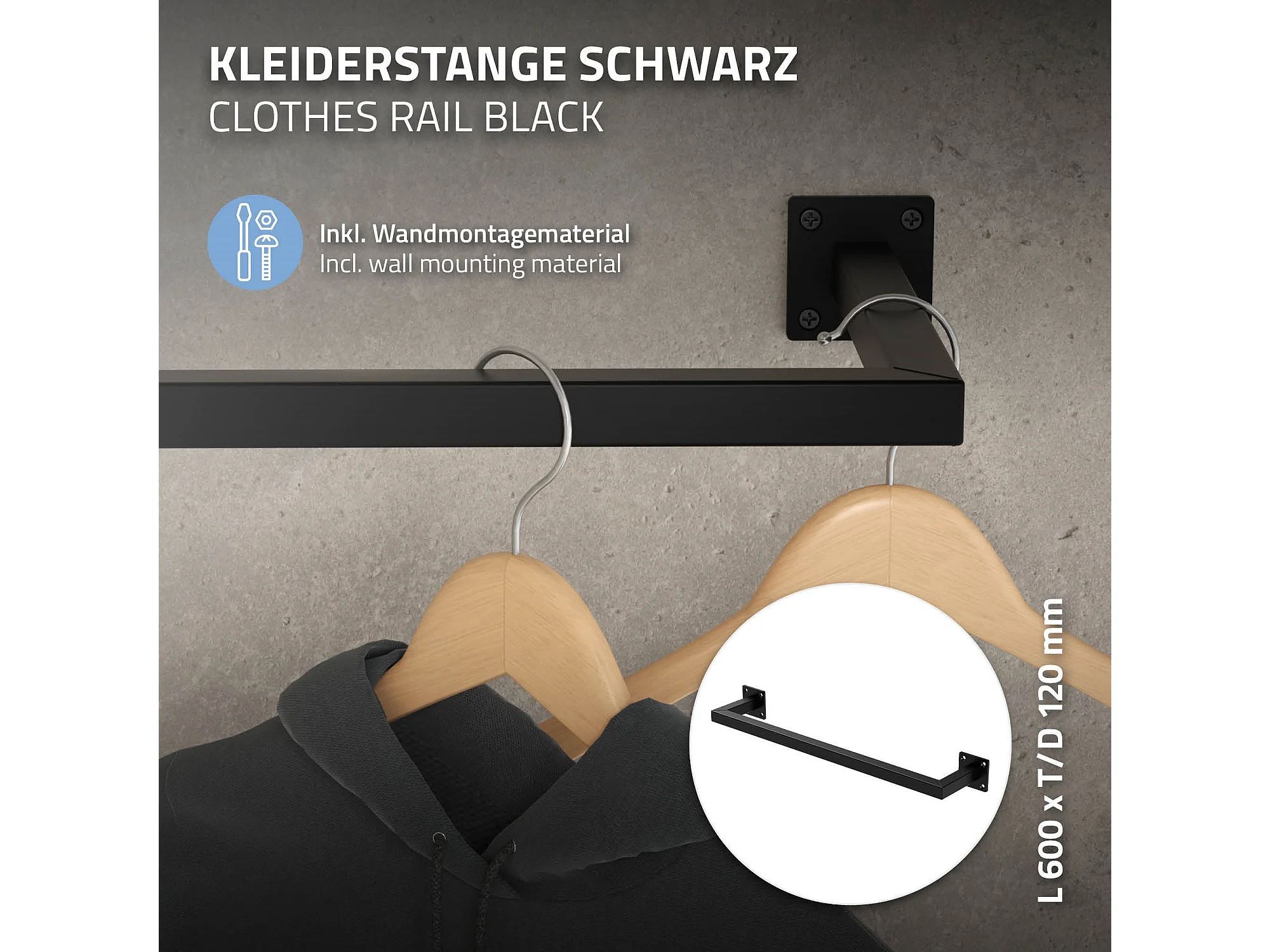 3x Tringle à vêtements tringle de support noir montage mural porte-manteau 60 cm