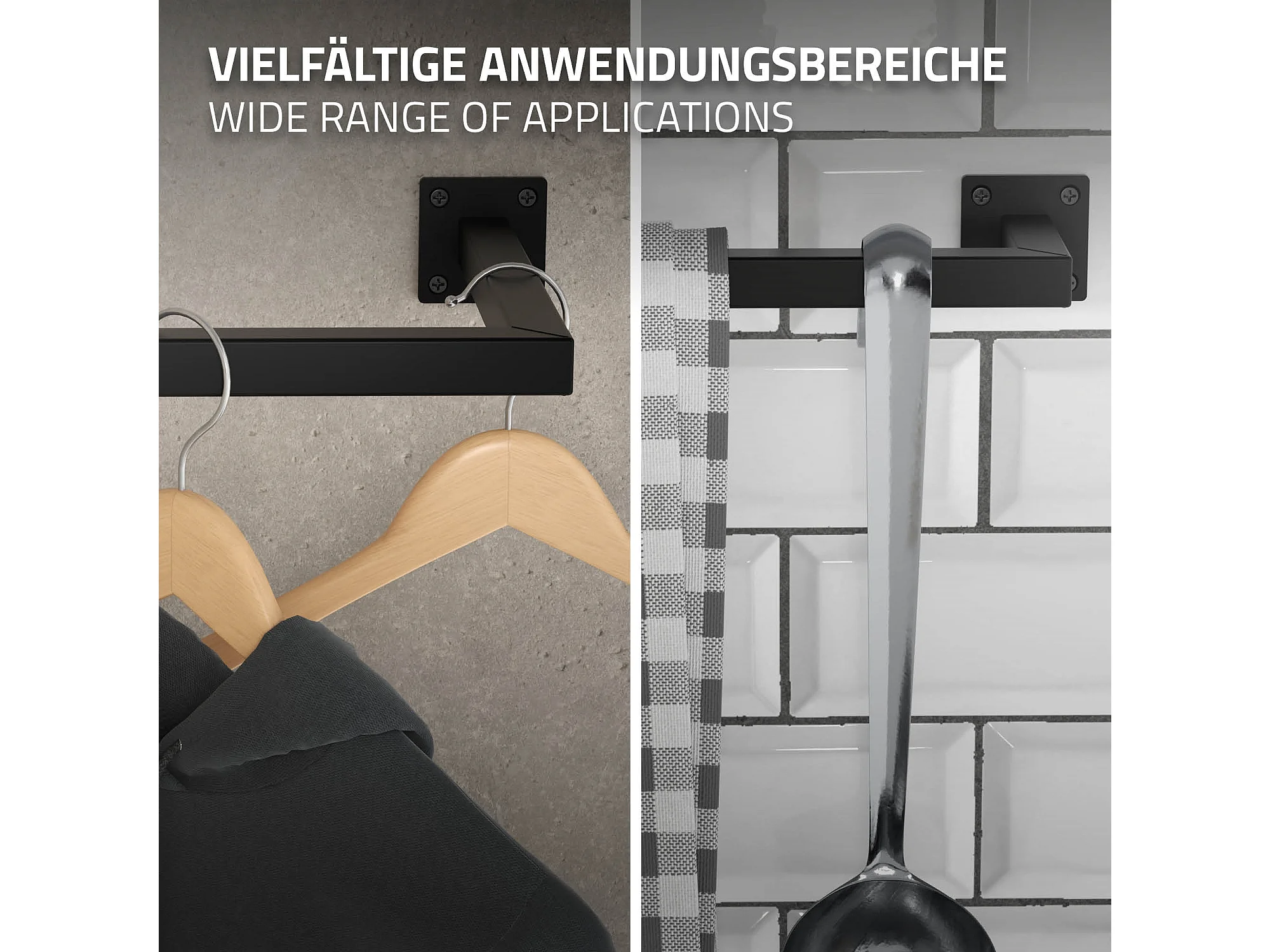 2x Tringle à vêtements tringle de support noir montage mural porte-manteau 60 cm