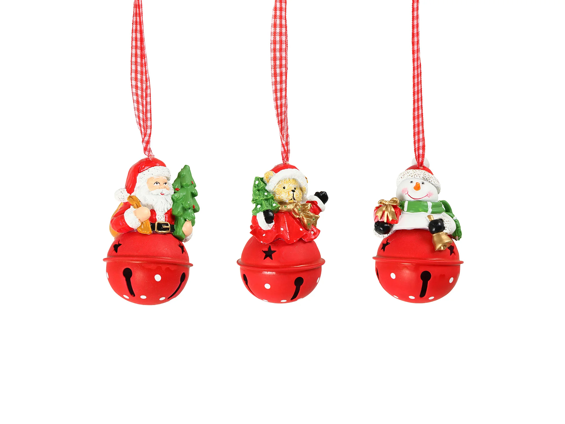 3 Boules grelot Pere noel Bonhomme de neige et ours