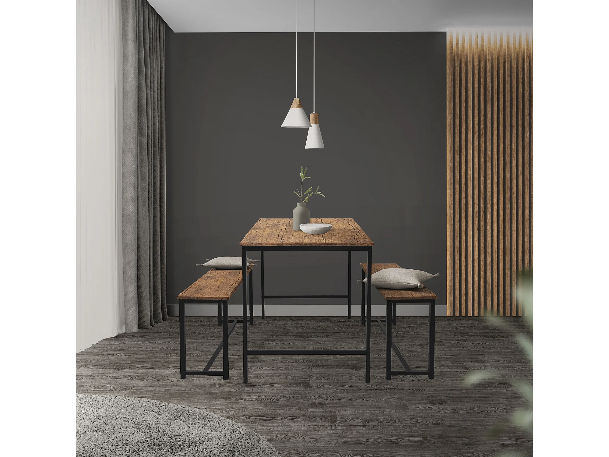 3 Pièces meubles de salle à manger cuisine 1 table 2 banquettes chêne rustique