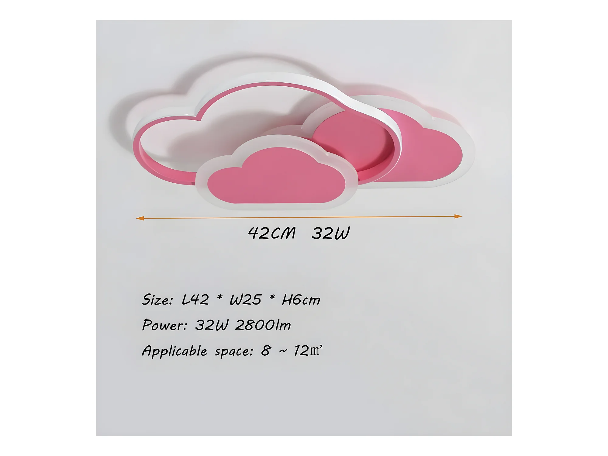 Plafonnier led nuage créatif dimmable 32w, 45*24*6cm, rose, avec télécommande 3000k ~ 6000k