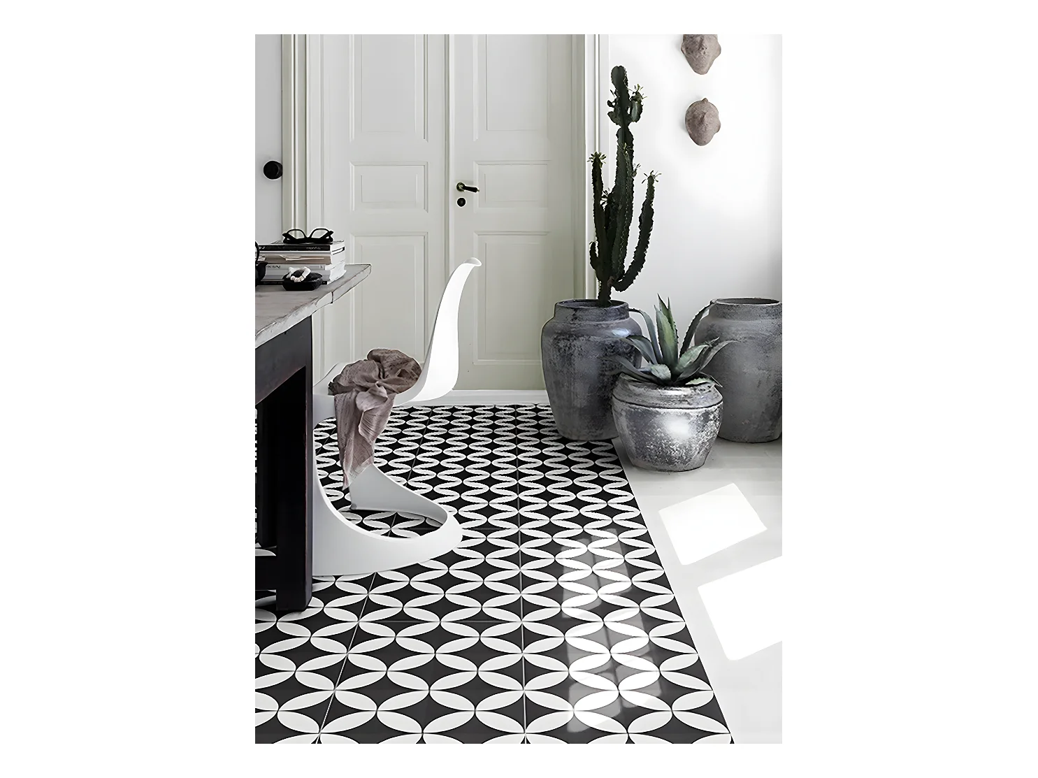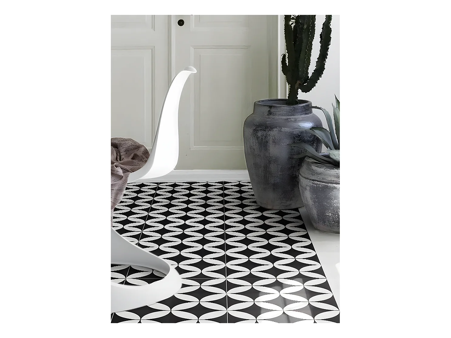 4 Carreaux de ciment véritable 0,16m2 / Carreaux de ciment artisanaux pour sol et mur coloris noir/blanc - l.20 x L.20 cm