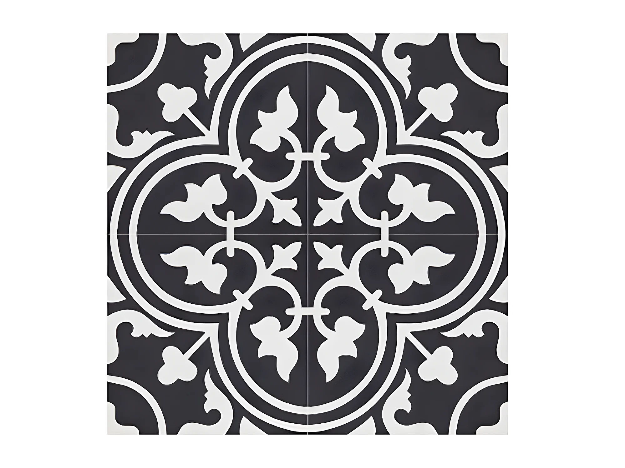 4 Carreaux de ciment véritable 0,16m2 / Carreaux de ciment artisanaux pour sol et mur coloris noir - l.20 x L.20 cm