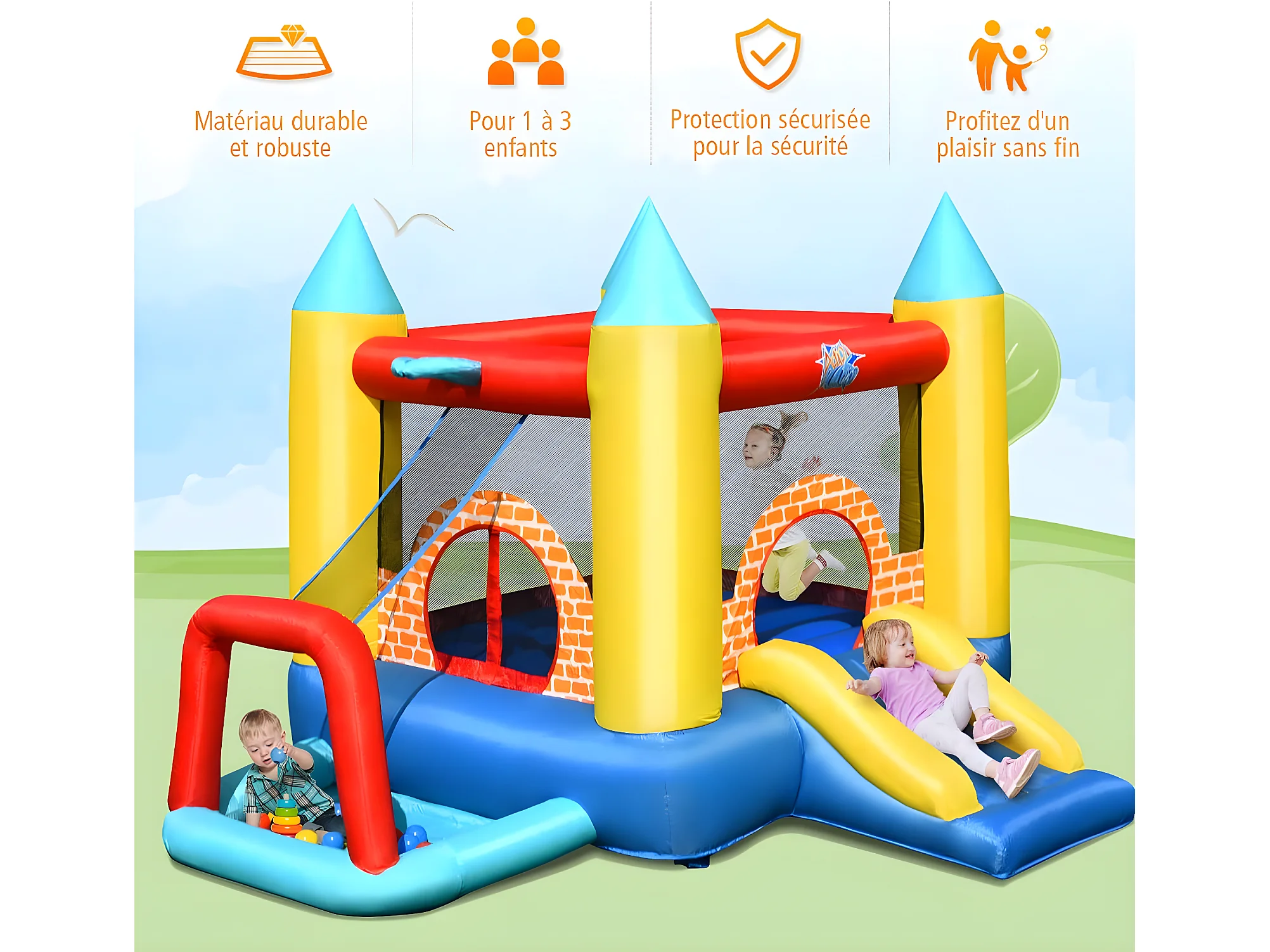 4 en 1 Château Gonflable pour Enfants avec Toboggan,30 Ballons 300x280x210CM pour 3 Enfants 3-10 Ans Capacité Max 135KG