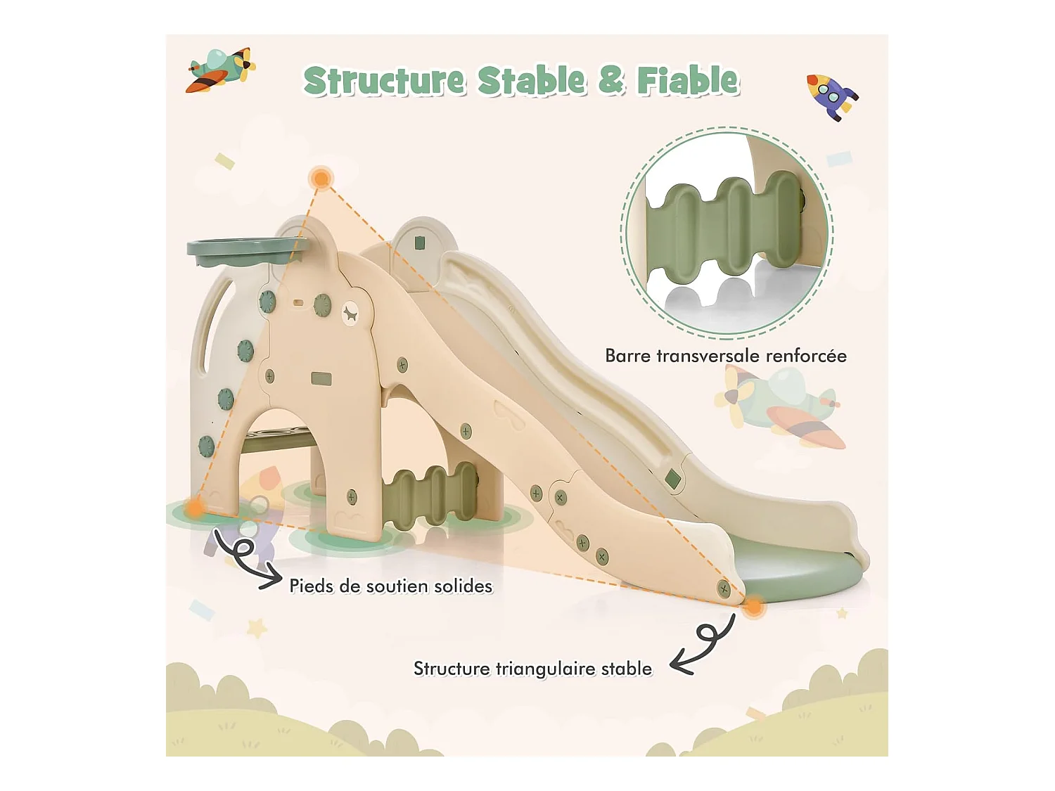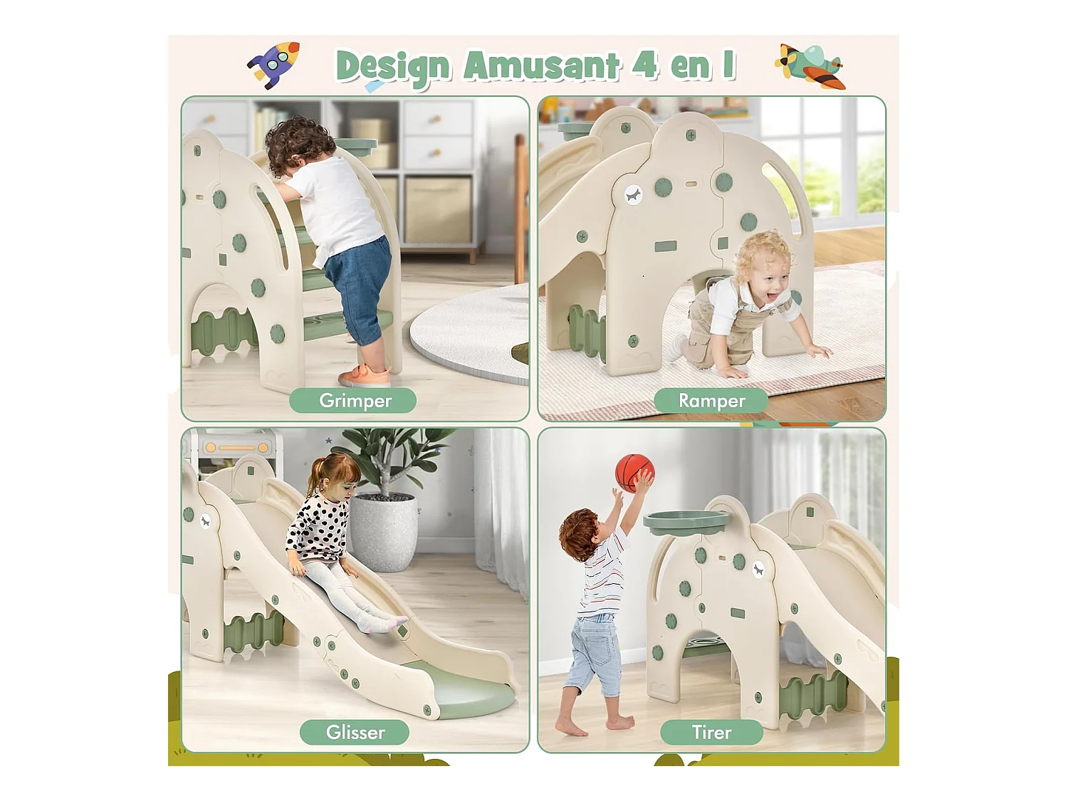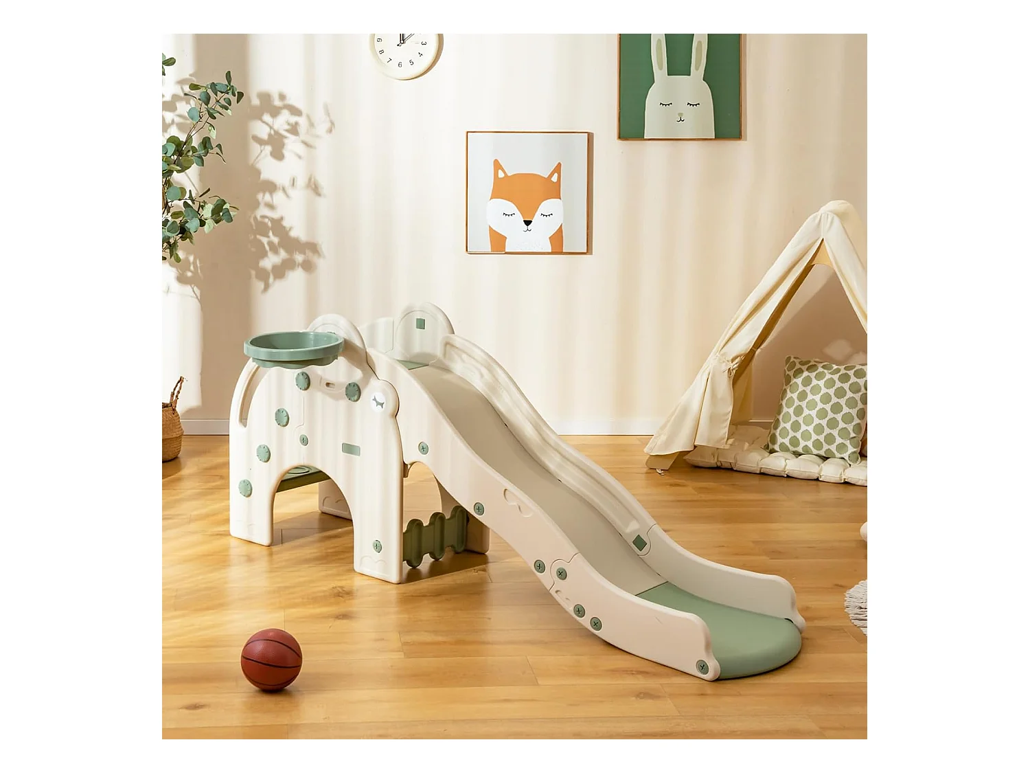 Toboggan 4 en 1 - avec escalier, espace de rangement, panier de basket - vert