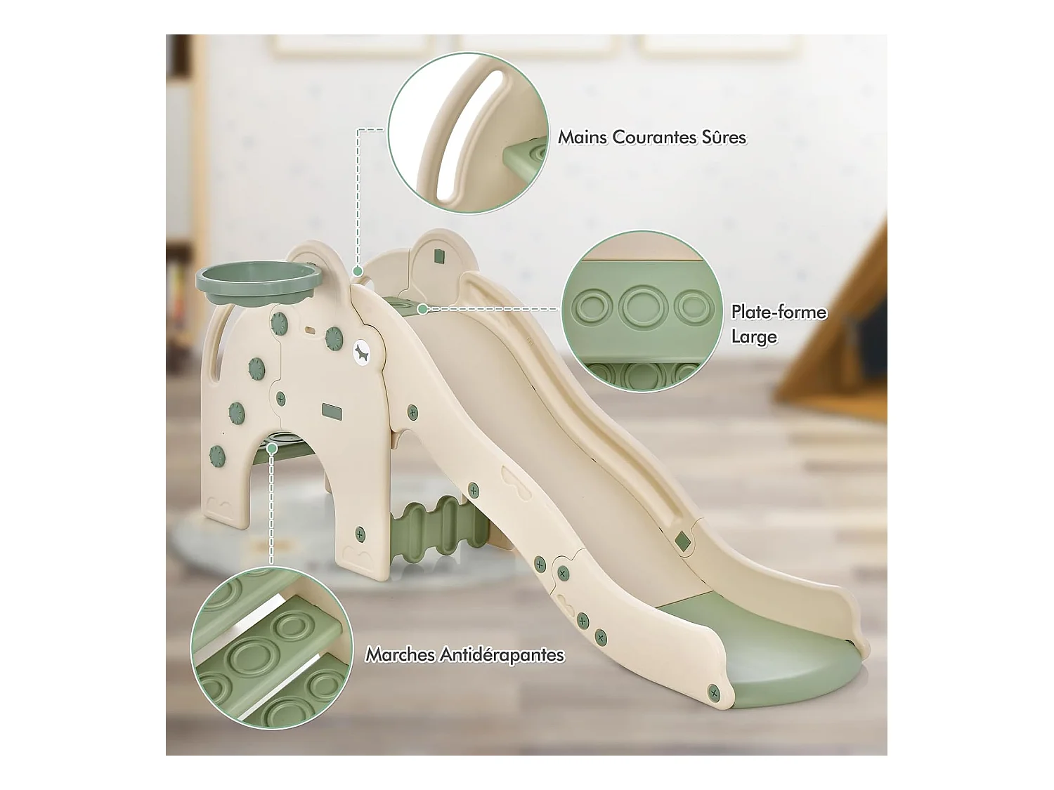 Toboggan 4 en 1 - avec escalier, balançoire, panier de basket - vert