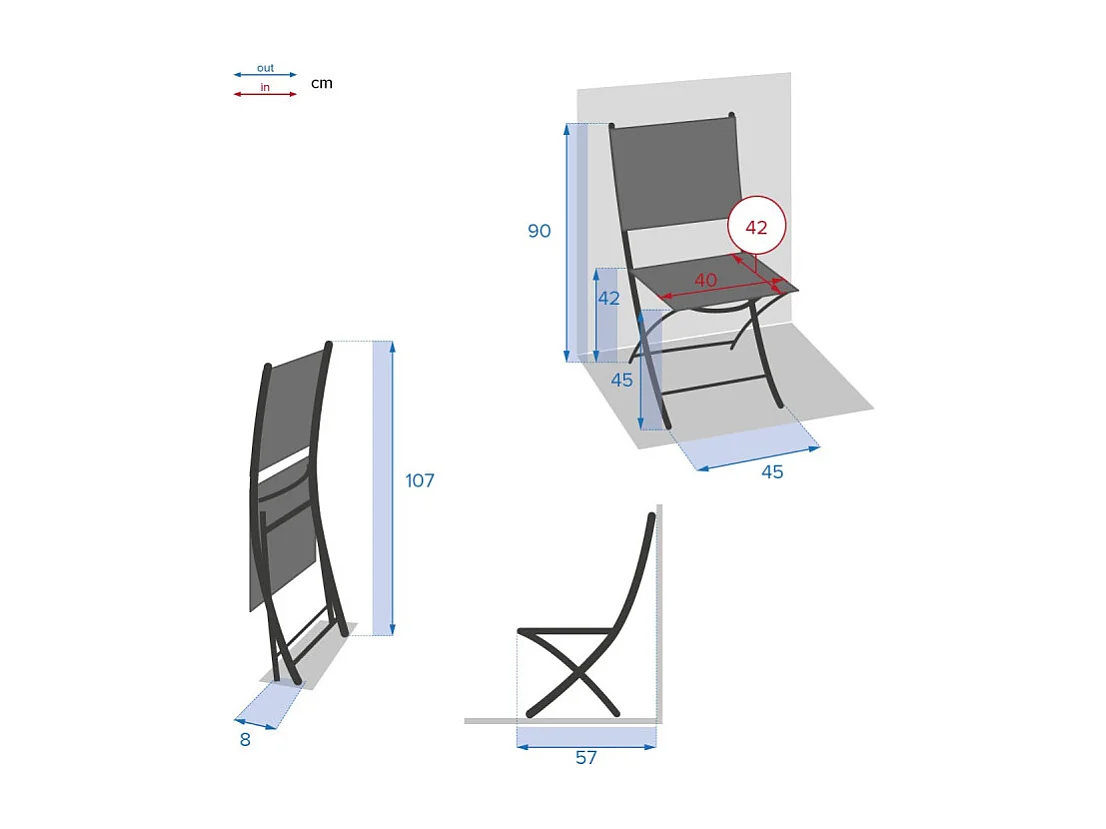 Chaise pliante extérieur Essentia wenge/tonka Hespéride