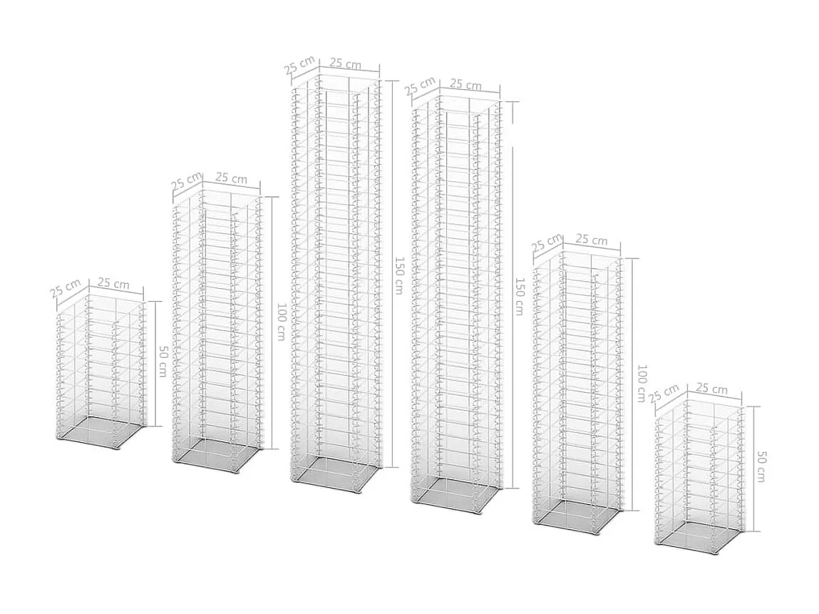 Jeu de panier de gabion 3 pcs Fil galvanisé 25 x 25x150